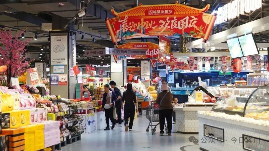 在福满多超市里,节日的热闹氛围同样浓郁。为迎接今年的中秋、国庆双节,福满多超市早已做足准备。