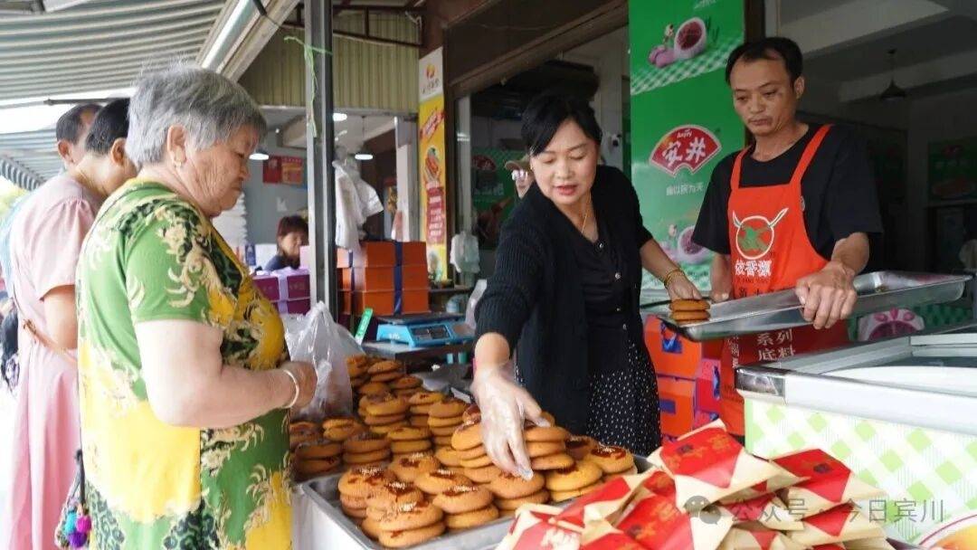 走进桑园河农贸市场,节日气息扑面而来,市场人来人往,各类商品琳琅满目。市场入口的海帆冷冻食品经营部制作的手工月饼成为最受关注的焦点,口味丰富多样,深受消费者喜欢。