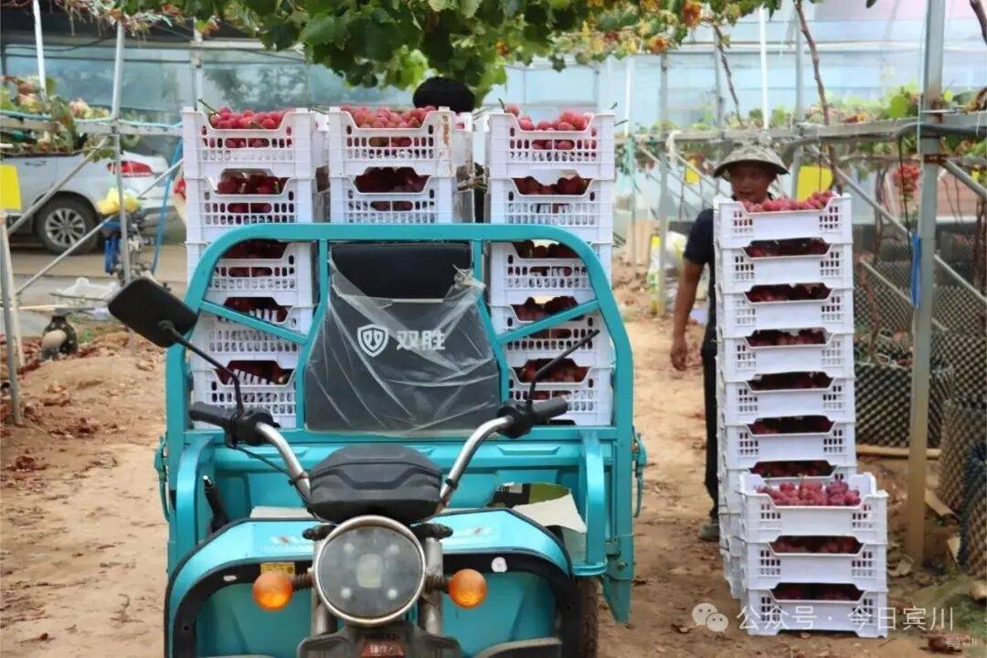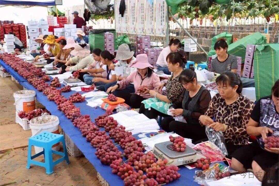 金秋时节,硕果飘香。走进宾川县大营镇萂村妮娜皇后葡萄种植基地,映入眼帘的是一片热火朝天的丰收景象。连片的现代化大棚下,一排排葡萄“盆栽”整齐排布,一串串色泽鲜亮、果粒饱满的妮娜皇后葡萄如红宝石般垂挂藤蔓间,工人们正有序地采摘、分级、包装、装箱,空气中弥漫着沁人心脾的独特果香。
