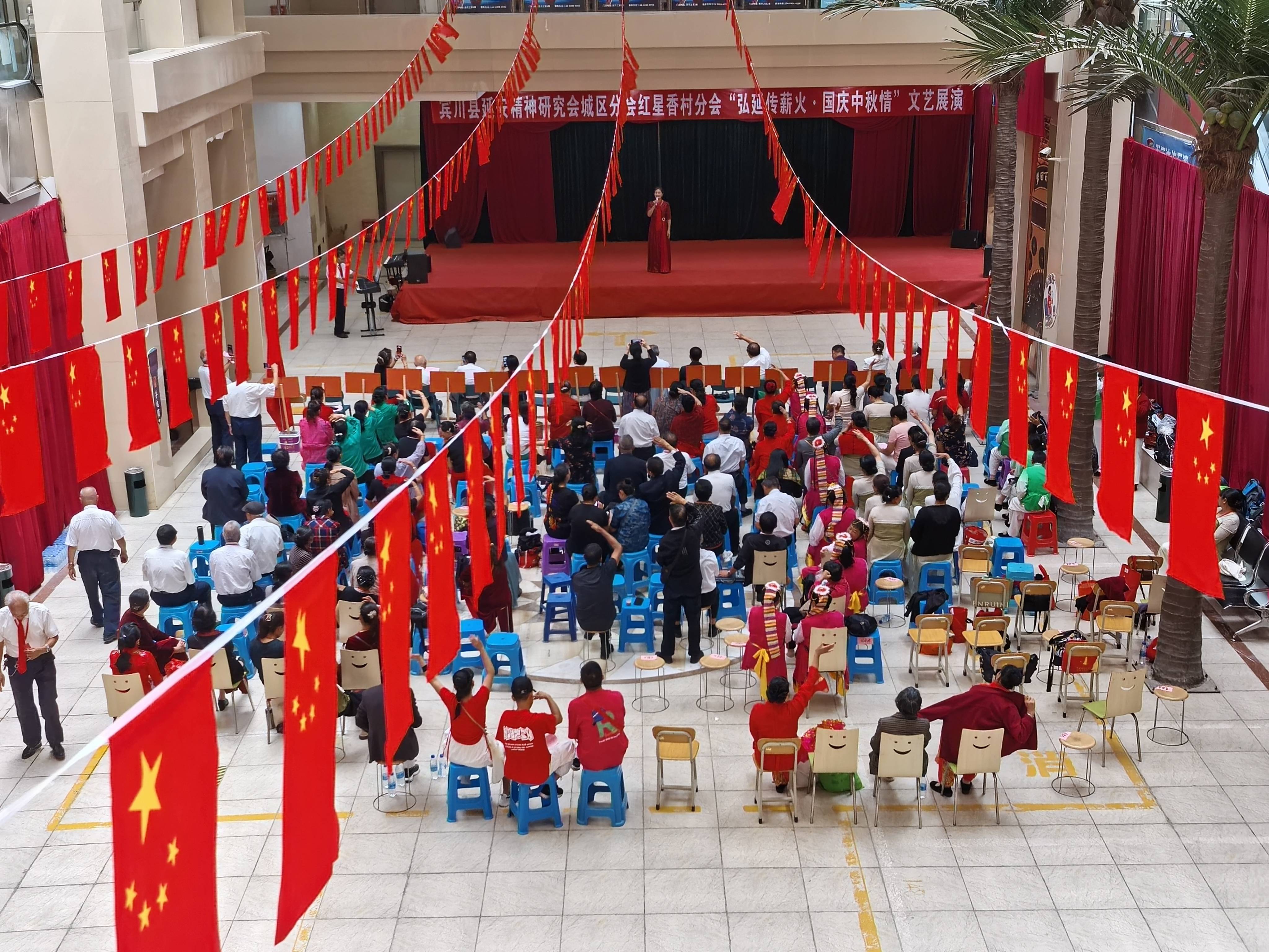 锦绣山河披盛装,丹桂飘香情意浓。为庆祝中华人民共和国成立76周年,喜迎传统中秋佳节,弘扬伟大的延安精神,9月30日下午,由宾川县延安精神研究会城区分会与红星香村分会联合主办的“弘延传薪火 国庆中秋情”文艺演出在红星香村分会活动场地隆重举行。两地会员与周边群众欢聚一堂,用歌声与舞蹈表达对祖国的深切热爱与美好祝福。