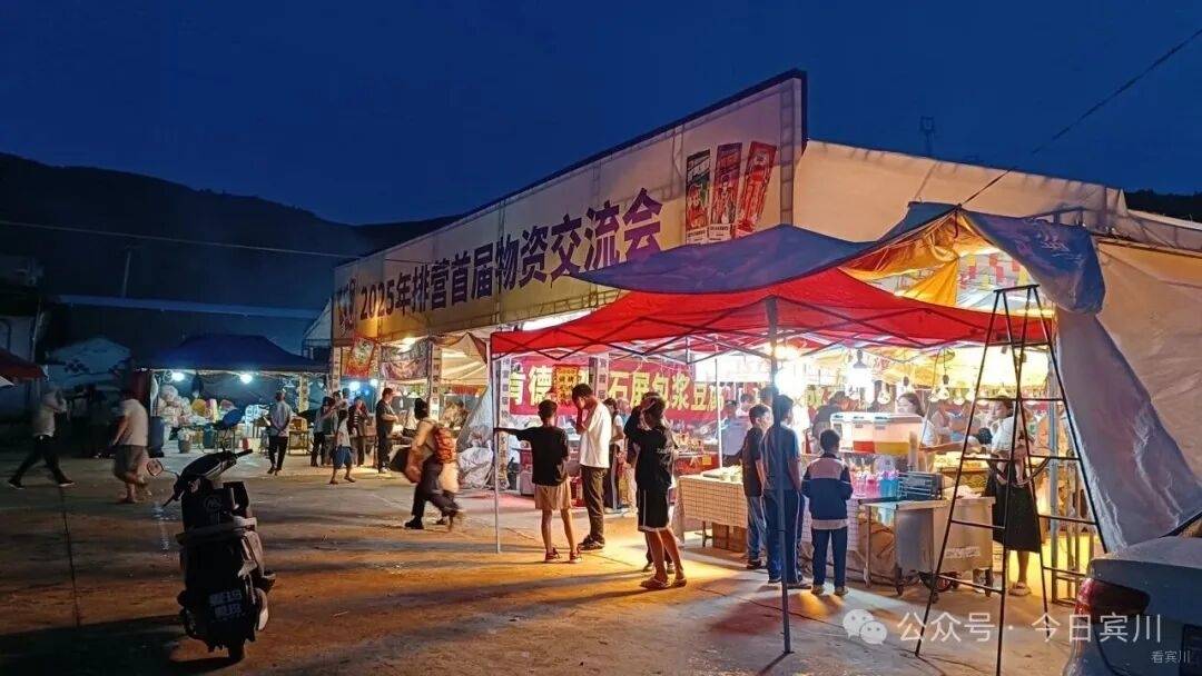 等夜幕降临,排营村的热闹劲儿一点没减,反而迎来了客流高峰 ——物资交流会上,乡土特产、特色小吃、手工艺品摆了一路,游客边吃边逛,“逛吃购游娱” 一站式满足。“现在单日最高有 6 千多人来玩,平均每天 3-4 千人,日均交易额约 4 万,头三天更是达到 7-8 万!” 活动承办方李兴成(宾川县泥塑县级非遗传承人)笑着说,这样的热度超出了预期。