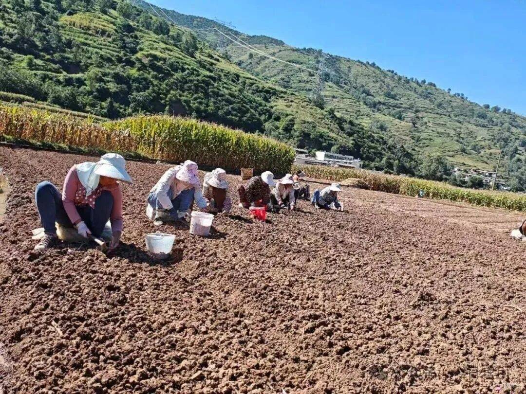 丰收的忙碌尚未落幕,秋种的准备已紧锣密鼓展开。玉米地收割完毕,旋耕机便开进田间,铁犁翻卷着湿润的泥土,将板结土地逐片翻耕得松软细碎,泥土清香混着残留的青草气息在田埂间弥漫。随后,村民们带着挑选好的蒜瓣,分散在田垄间熟练地播种,饱满的蒜瓣按大小分拣整齐,沾着清晨的露水,小锄头刃口锃亮,木柄光滑温润,他们分散在田垄间,弯腰屈膝成娴熟的弧度,先用锄头在松软的土垄上划出浅沟,再将蒜瓣芽尖朝上轻轻放入沟中,每株间隔约10厘米,动作连贯得如同流水线,最后用锄头轻轻拨土覆盖,脚掌顺势在垄面轻踩压实,确保蒜瓣与土壤紧密贴合,防止后期浇水时倒伏。夕阳西下时,田垄上已布满整齐的播种痕迹,一周前播种的大蒜已长出嫩绿的叶片。