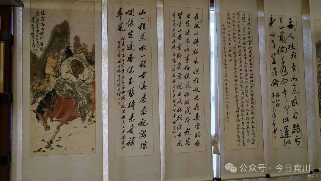 随后开展的“徐霞客主题书画展”同样精彩纷呈。展览共展出70余幅书画作品,创作者涵盖全国多个州县、省级乃至国家级书画家。这些作品或以徐霞客徒步考察的场景为题材,或以《徐霞客游记》中的经典语句为内容,通过书法的笔墨风骨与绘画的生动意境,将霞客精神与山水之美融为一体。观展者驻足画前,仔细揣摩作品中的细节与内涵,不时相互交流感悟,在墨香与色彩中感受霞客文化的独特魅力。