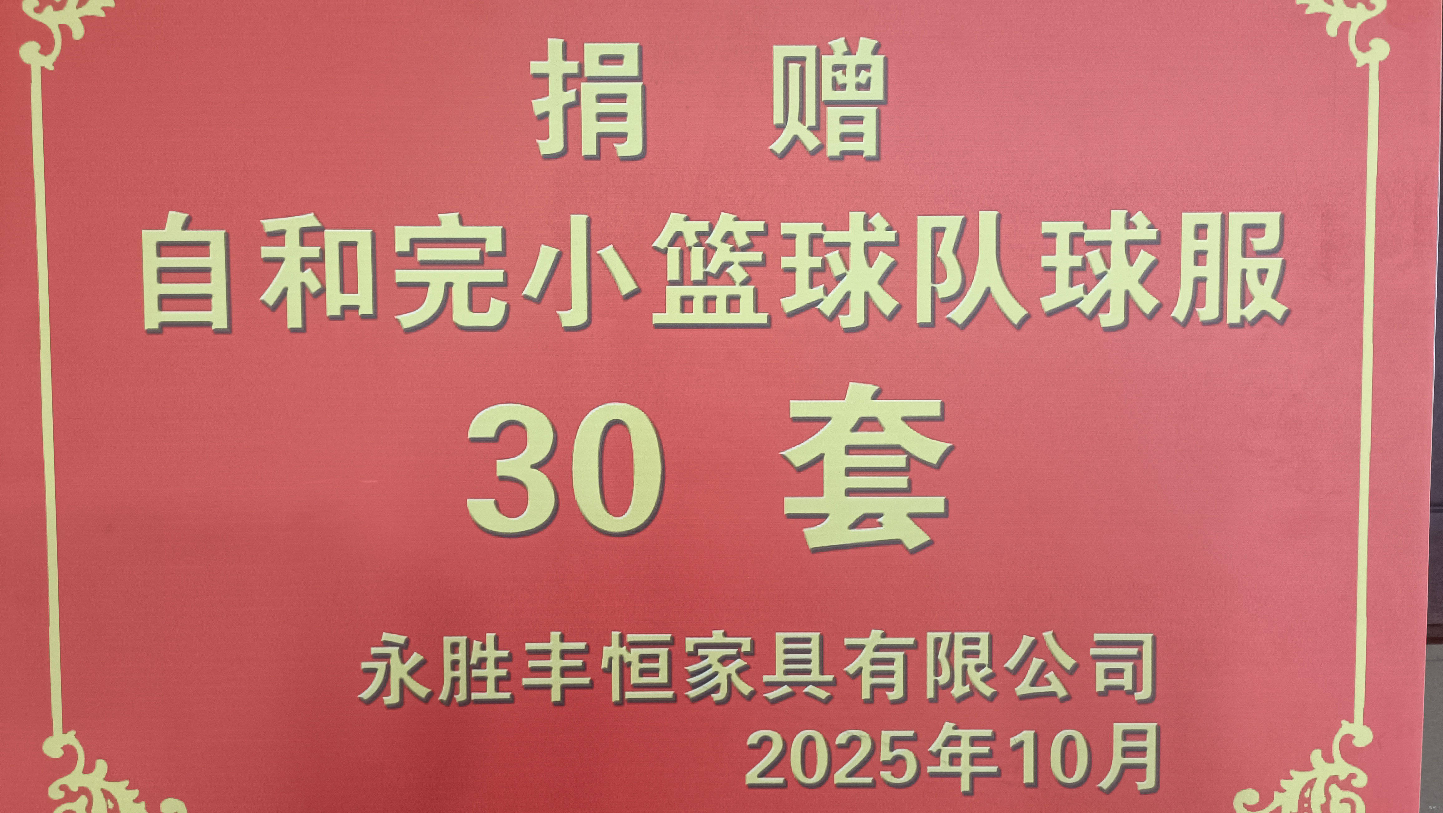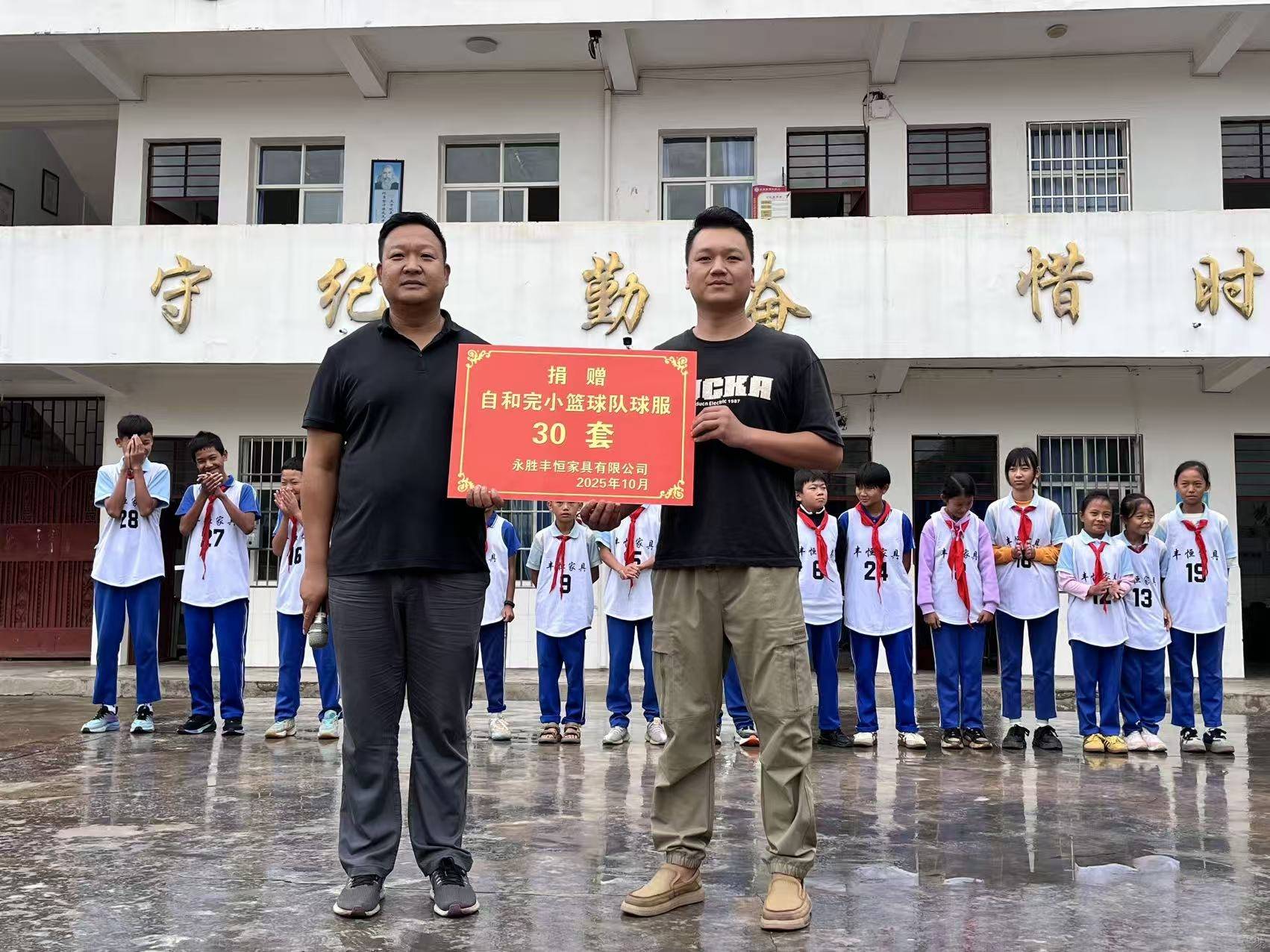 企业爱心捐赠,善举彰显真情。10月20日,丽江市永胜县永胜丰恒家具有限公司向自和完小捐赠30套篮球运动员球服,传递体育精神和爱心情怀,助力少年篮球梦的实现。