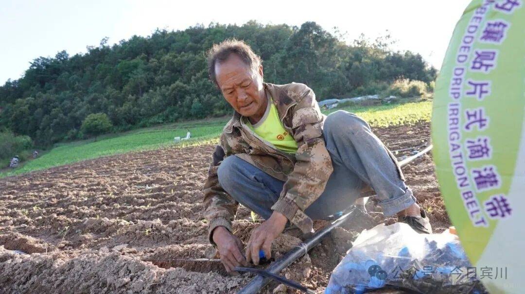 铺带、裁剪、打孔、连接主管……不多时,两排滴灌带便铺设完成。曾学良去年种植的两亩多贡菜,亩均收益在一万一、二,虽收益可观,却常受缺水困扰。