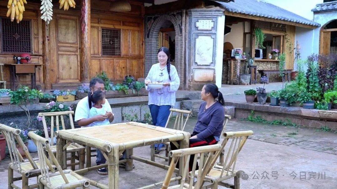 院子改造好后,她们开始在这里拍摄创作,用短视频分享宾川特色美食制作过程,不仅让小院成为邻里相聚的“打卡地”,更让“旅居”的美好图景走进了更多人的视野。张蕊说:“周边的一些朋友、粉丝看了我们的视频后,就说很想尝一尝我们家做的饭菜。之后,他们来到我们小院参观,在这里吃顿饭,大家聊聊天,喝茶,交朋友。”