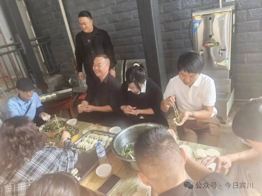 随后,敬老院工作人员和爱心企业的志愿者开始为老人们准备一顿美味的饺子。厨房里,大家分工明确,配合默契。几位志愿者熟练地拿起菜刀,将新鲜的蔬菜切成细碎的小块,“咚咚咚”的切菜声就像一首欢快的交响曲。一旁的工作人员则专注地调着饺子馅,他们将鲜嫩的肉末、切好的蔬菜,再加上各种调料,充分搅拌在一起,不一会儿,香味就弥漫了整个厨房。其他的志愿者们则围坐在桌子旁,认真地包着饺子。他们将饺子皮放在手心,用勺子舀起适量的馅料,轻轻放在饺子皮的中央,然后灵巧地捏起饺子皮的边缘,一折一捏,一个个饱满圆润的饺子就诞生了。空气中,饺子馅的鲜香和大家的欢声笑语交织,满是家的温馨。
