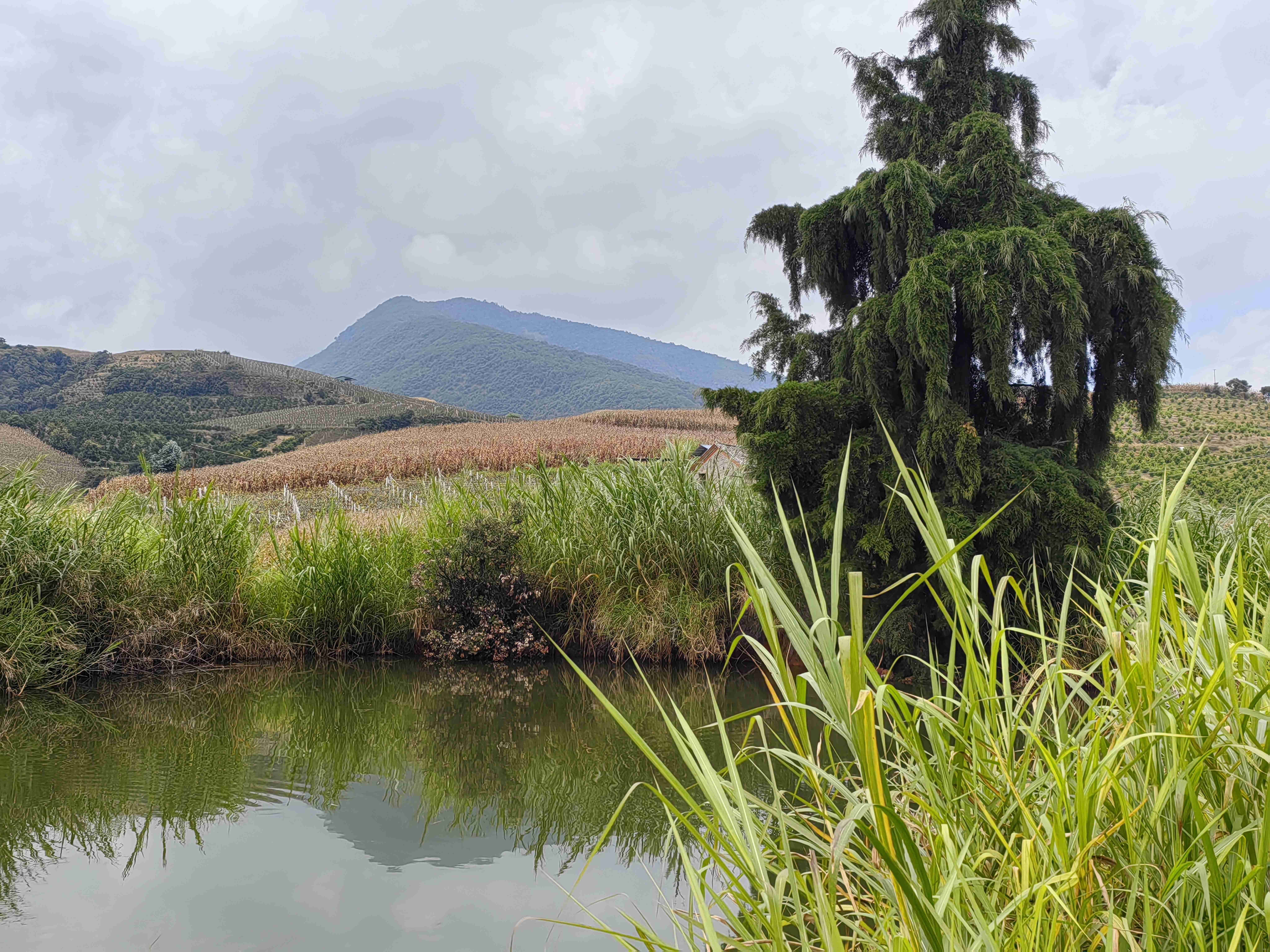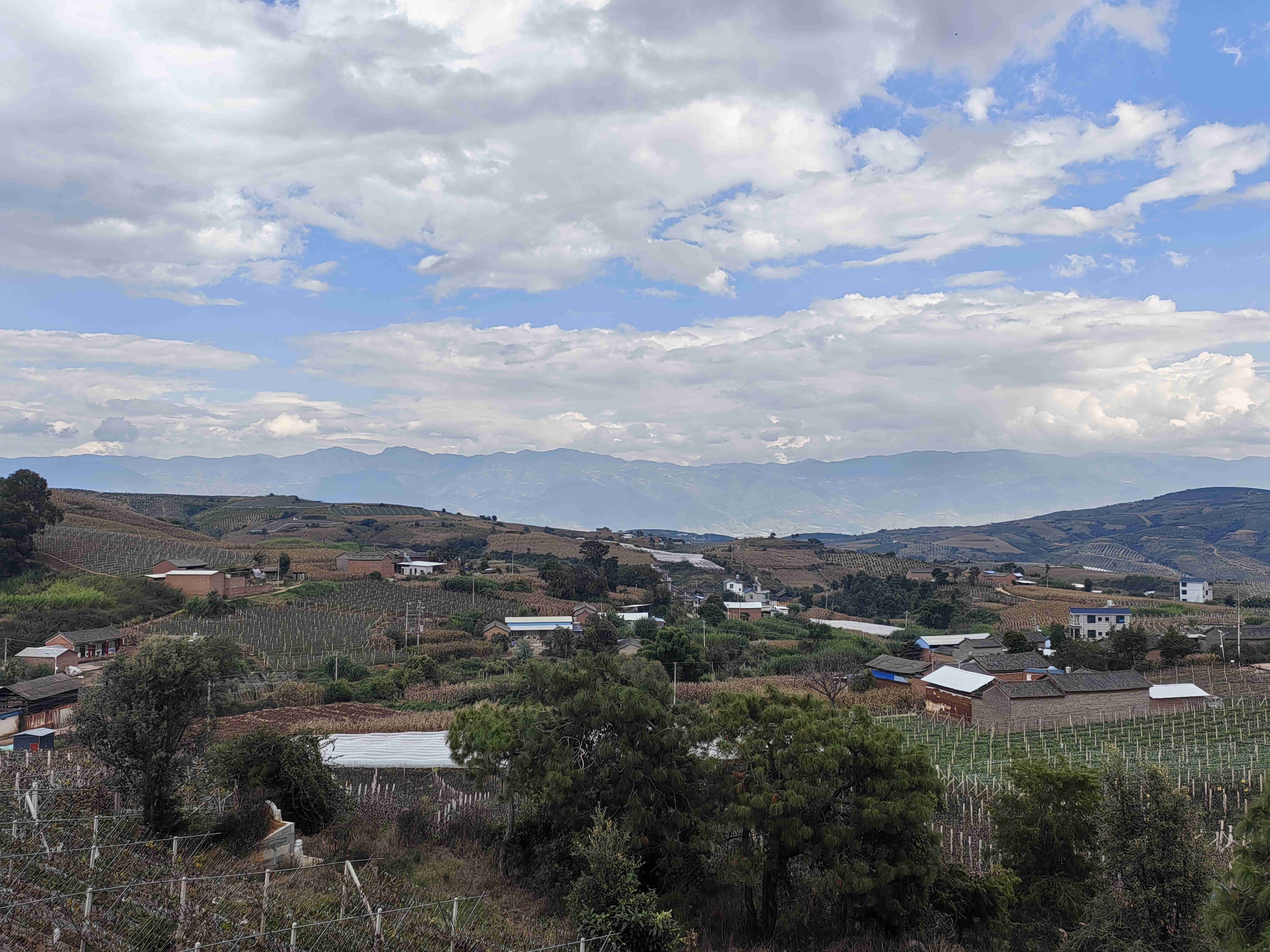 村子的灵气,藏在水洼里。大塘子曾因干旱犯愁,山脚下的土地渴得裂开细纹,村民们挑水浇地要走几里山路。后来借着扶贫攻坚的东风,党委政府牵头引鸡叫山旁沙址河的水入村,泉水顺着管道流进村里,也流进了村民的心田。如今再看村里的水塘,倒映着青山、绿树、白墙,偶有蜻蜓点水,漾开一圈圈涟漪。有了水,土地活了,过去的荒坡种上了果树,光秃秃的山坳长出了绿草;有了水,村子美了,村民在水塘边种草种树。山绿了,地绿了,水塘亮了,大塘子就像被润透的翡翠,在鸡足山麓焕发光彩。