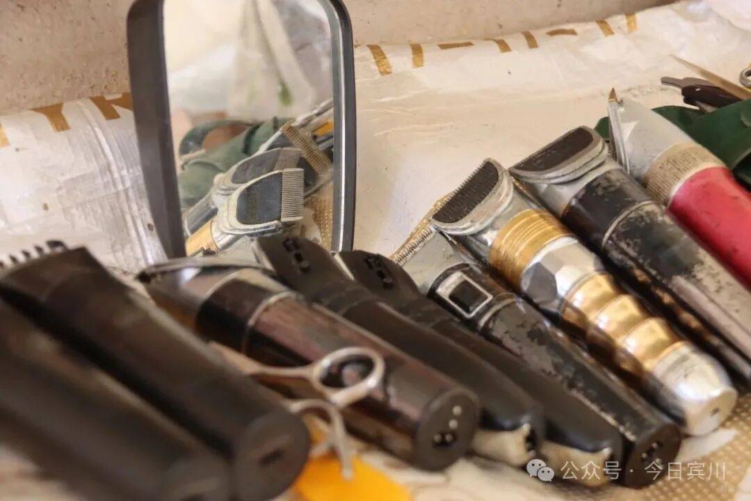 邱德的理发摊堪称“乡村理发博物馆”:手动推剪、剪刀、梳子、围布,工具简单却一应俱全。他理发的动作轻柔熟练,左手轻托老人额头,右手握着的旧推剪稳而均匀地推进,修到鬓角、后颈这些细微处,便换成小剪刀精心修理,再用热毛巾敷面,帮老人刮净胡茬。一套流程下来,老人显得精神矍铄。