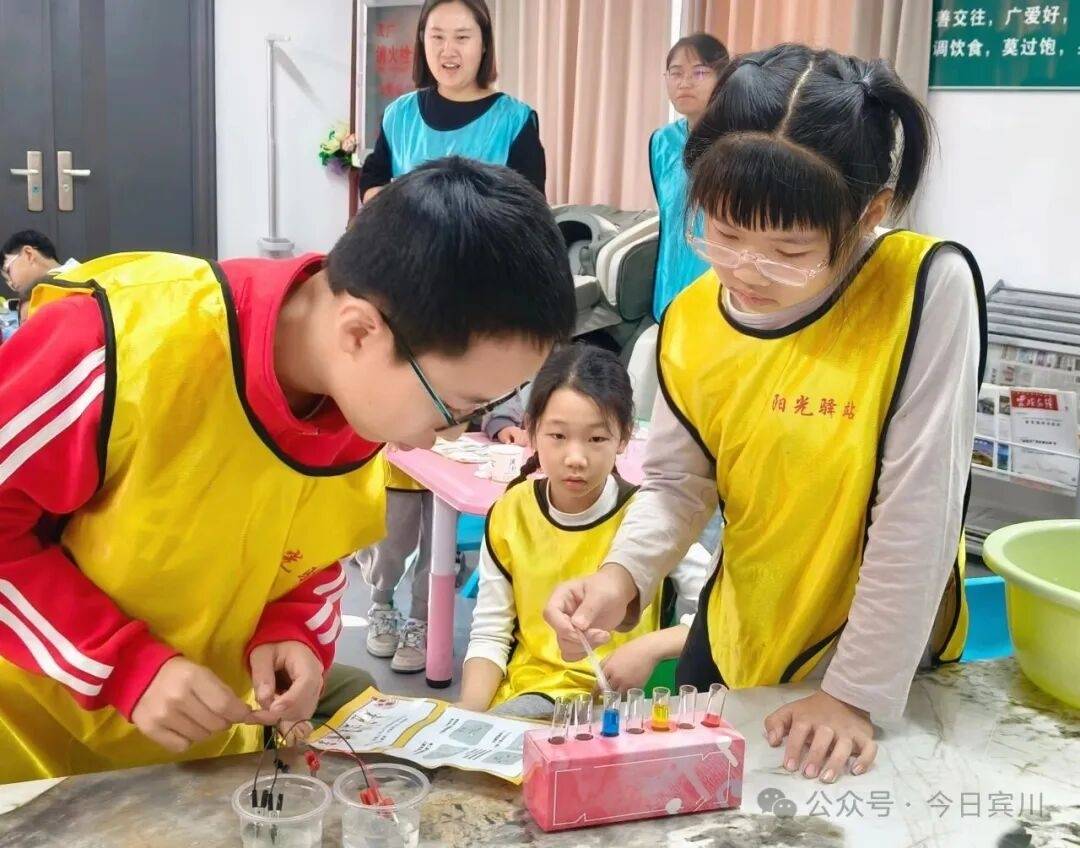 10月26日,金牛镇越析社区阳光驿站里洋溢着孩子们的欢声笑语。一场以“小小科学家,童心探世界”为主题的科学实验活动正在有序展开,吸引了社区16名小学生的踊跃参与。