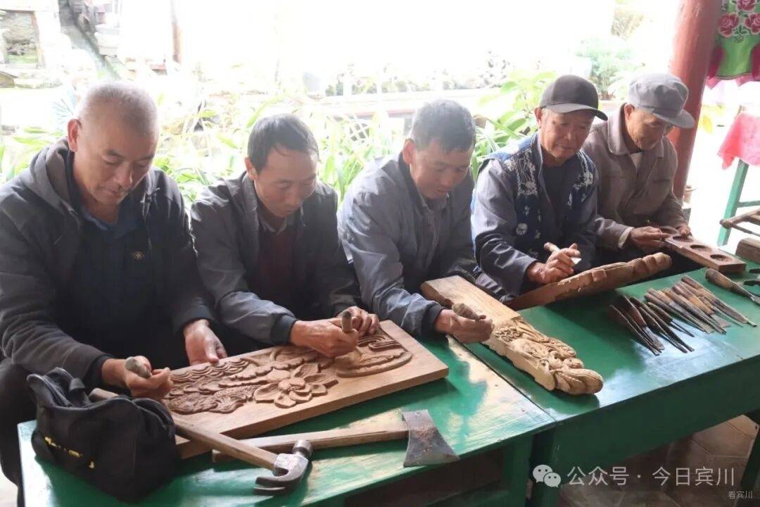培训现场,博物馆大厅成了木雕艺术的“沉浸式工坊”。几位老师傅正全神贯注地在木头上雕琢。随着手中的刻刀灵活转动,木屑簌簌落下,不一会儿,栩栩如生的瑞兽、精致的花卉纹样便在木头上显现出来。