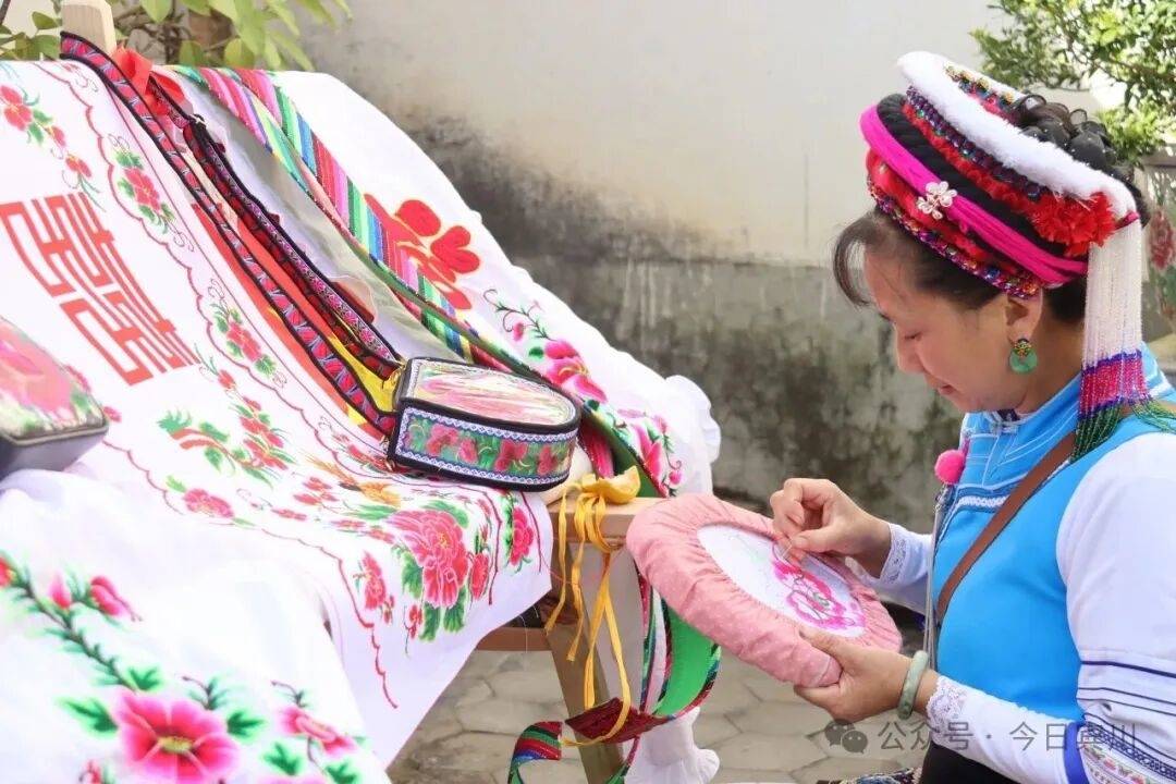 木雕的刀光剑影之外,刺绣、剪纸等非遗技艺展区同样热闹。刺绣技艺县级非遗传承人杨艺华正在绣架前飞针走线,将她五代传承的技法倾囊相授。“我家祖祖辈辈都做刺绣,到我这一代已经是第五代了。”杨艺华一边讲解一边示范,“我去过8个省份2个国家学习交流,看到了很多优秀的非遗作品,我想把学到的技艺分享给村子里的姐妹和小一辈,不让老手艺失传。”