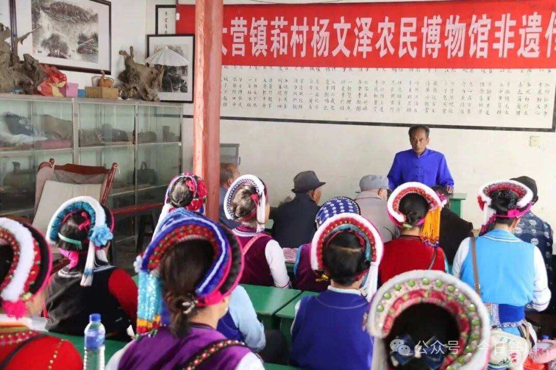 作为一名土生土长的萂村人,多年来,杨文泽潜心致力于大理白族传统文化与萂村历史文化的研究与传播,创建了萂村农民博物馆,馆内收藏有传统服饰、生产工具、生活用具等各类老物件上千件,吸引了大量文化爱好者到访参观。同时,杨文泽依托博物馆开展了系列非遗传承培训活动,让这座藏于古村落的白族四合院,成为乡村非遗传承的“活态课堂”。