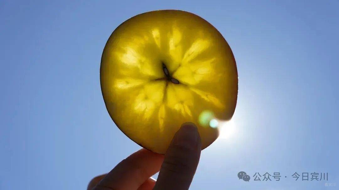 邻近的李洪东家14亩苹果园同样硕果累累。山区平均气温低、昼夜温差大,造就了这里苹果独特的脆甜口感。果核周围形成的“糖心”在阳光下如花朵般绽放,成为品质的最佳证明。