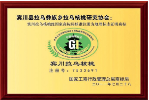 “宾川拉乌核桃”:1983 曾获国家外贸部优质产品奖,1988 年获省人民政府出口创汇奖,1992 年以来连续 5 年获大理名特优质食品“金花奖”;1995 年获“昆明新技术产品奖”;产品名扬国内外。公司 2008 年获“大理州核桃流通十强”,2008—— 2010 连续三年获宾川县委政府“核桃新进协会先进单位”;2010年获国家级“ 科普惠农新进单位”称号。产品在参加 2011 年中国科协举办的中国农高会上获“优秀产品奖”;多次参加昆明农博会均获“优秀产品奖”。2012 年获“云南名产品”称号。2012 年获“云南省著名商标”;2010 年被评为“云南省林业产业化龙头企业”;2014 年通过了国家环保局第五批“中国有机基地”认证。“宾川拉乌核桃”被认定为大理州优质原生种源种群保护基地;2015 年获 “大理州知名商标”,2016 年在县工商局的推导、衔接支持下,通过云南百智中介帮助,由会长自筹 100 万元资金, 申报成功了“ 中国驰名商标”。可以说宾川拉乌核桃又取得了一项“金字招牌”。