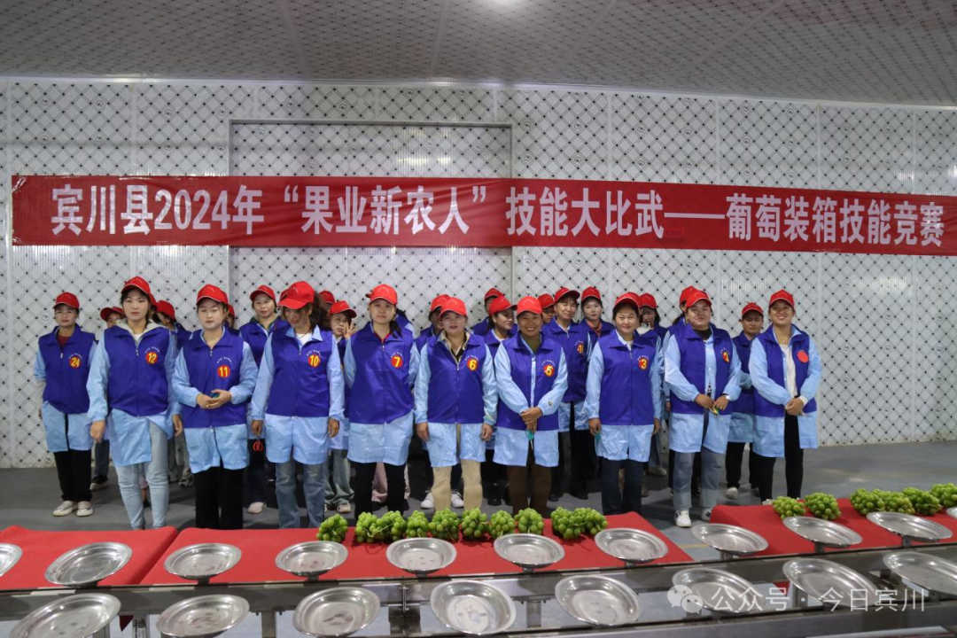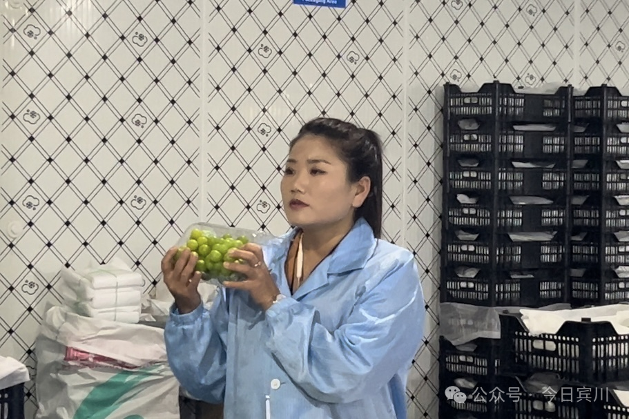 在宾川县宾居镇的云南橘葡仓冷链储运有限公司车间里,100多名女工围坐在流水线旁,剪刀“咔嚓”剪断果梗,塑膜袋“簌簌”裹住葡萄,金线“啪”地系紧袋口——手里的活快得生风。