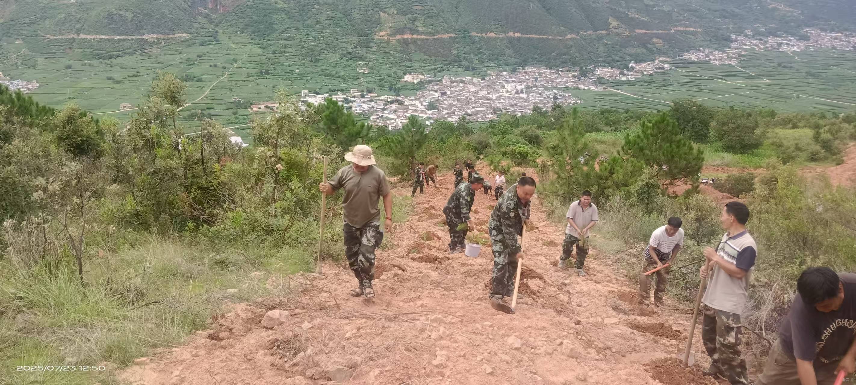 生态守护要保住“老遗产”,也要培育“新希望”。今年雨水充沛,平川镇紧抓植树造林黄金时节,组织干部群众开展植树活动,将生态建设理念转化为实际行动。干群齐心,分工协作,挖坑、扶苗、填土、浇水,一次活动便栽种云南松1000余株,为镇域生态增添新绿意,同时为确保“栽一片、活一片、绿一片”,建立后期管护长效机制,安排专人定期巡查,及时补栽枯萎树苗。“十四五”期间,平川镇累计开展“绿色宾川党旗红”植树活动、义务植树活动20余次,完成植树造林24万株,30余万亩松林每年开展松材线虫病监测普查,53万亩林地得到有效保护。