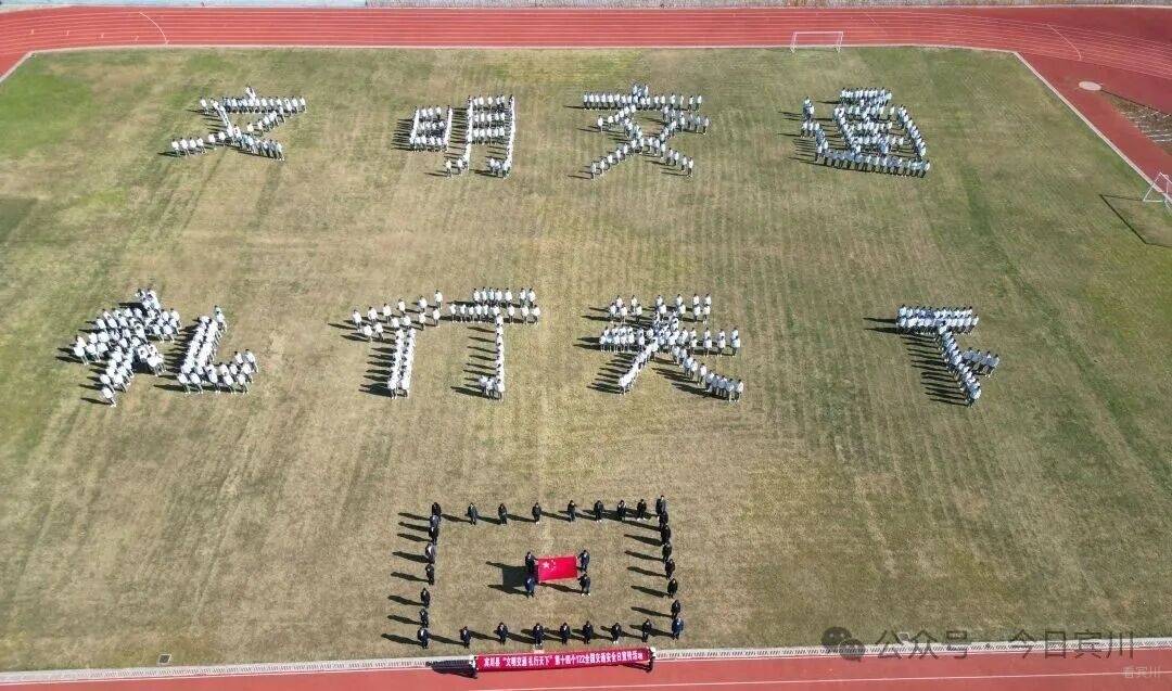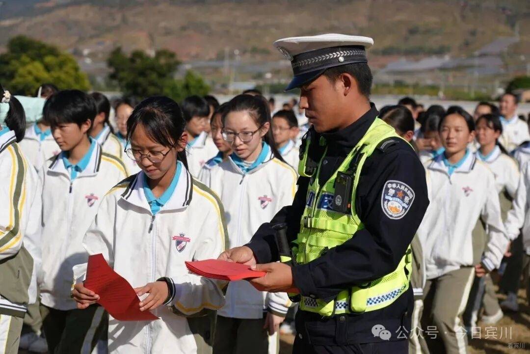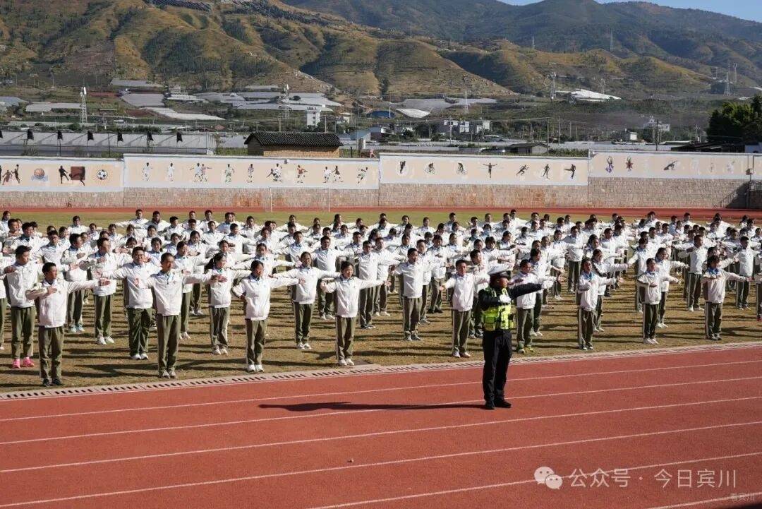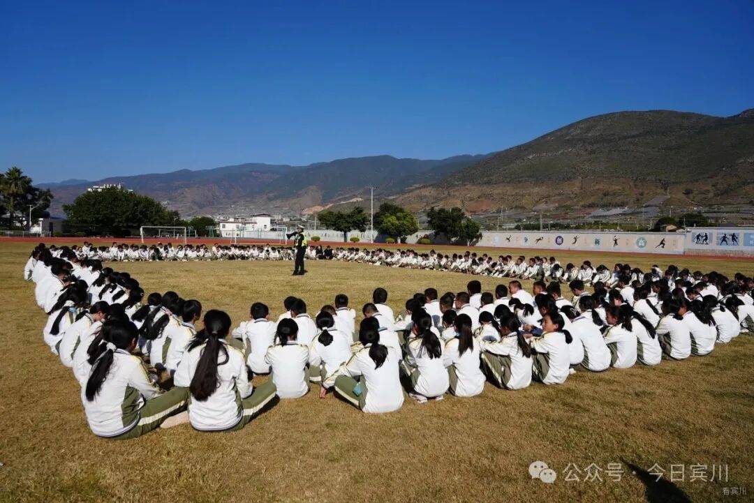 在宾川育英实验学校的校园里,宣传民警告别了传统的“你讲我听”模式。在校园里的操场上,数百名师生以蓝天为幕、以绿茵为席,共同拼出“文明交通 礼行天下”的巨型字样,鲜艳的国旗在中心熠熠生辉,以极具视觉冲击力的方式作出了对文明交通的承诺。