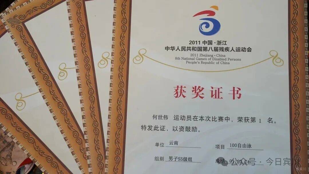 命运的转折曾猝不及防。2004年,年少调皮的何世伟从缆车掉落受伤,人生轨迹就此改写。2008年北京残奥会的盛况,让他在游泳项目中看到了新生的希望,“当时看到残奥会游泳比赛,我就想,我这种身体素质游泳也能参加!”带着这份执念,他主动寻找教练,2009年6月成功踏入云南省残疾人游泳队的大门,面对“拿不到全国前三就留不下”的严苛要求,他在一次次筛选淘汰中咬牙坚持,用汗水浇灌成长。