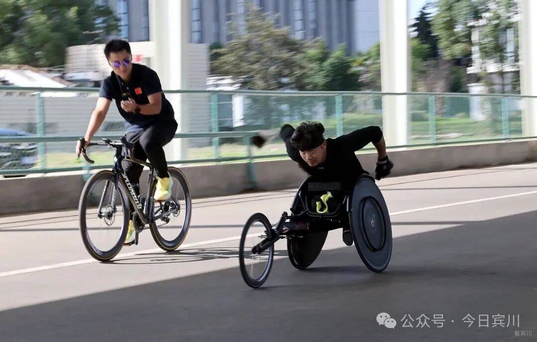 时间紧迫,他开启了高强度训练模式,每天清晨6点半便奔赴场地练手摇车,上午9点练竞速轮椅到12点,下午1点40分开始游泳至5点半,傍晚7点再加练轮椅滑行,“一天4练,这么高强度的训练,以前游泳都没练过这么久。”手臂与腰部的疼痛从未停歇,“手臂、手现在都还疼,训练的时候激活肌肉就感觉不到了,结束后又开始疼,全靠意志力撑着。”陌生的竞速轮椅曾让他一公里都划不完,“跪在里面很不舒服,腰有伤受不了,腿又麻又酸痛,一圈都坚持不了,当时特别着急。”他从半圈、一圈慢慢坚持,一周便能完成两圈滑行,再通过反复观看比赛视频琢磨技术,在教练指导下调整动作,最终将竞速轮椅一公里配速提升至3分钟,一步步追近专业水平。