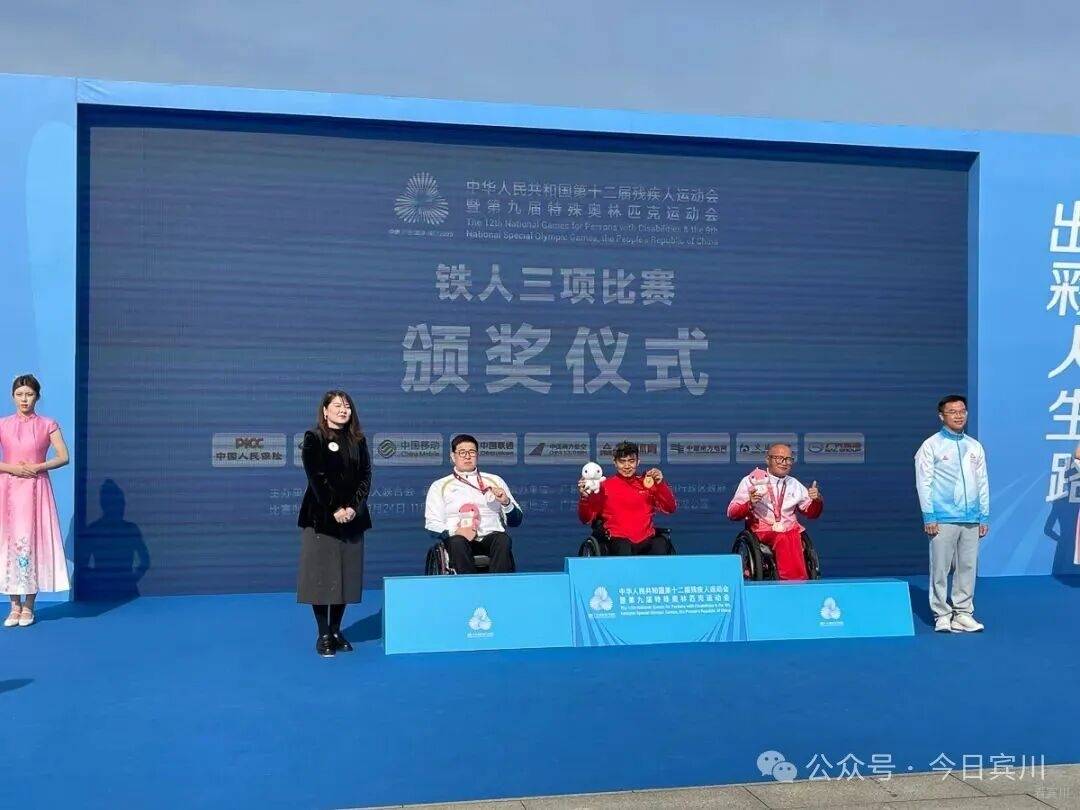 在全国第十二届残运会暨第九届特奥会铁人三项赛场,宾川籍残疾人运动员何世伟以1小时12分52秒的成绩斩获男子PTWC组冠军,领奖台上,他举起奖牌的那一刻,热泪盈眶,满心感慨:“太不容易了,真是九经十八难,难难不一样。”这份荣光背后,是35岁的他跨界追梦的执着,是伤病与波折中淬炼的坚韧,更是一位残疾人运动员用热爱与坚守书写的自强华章。