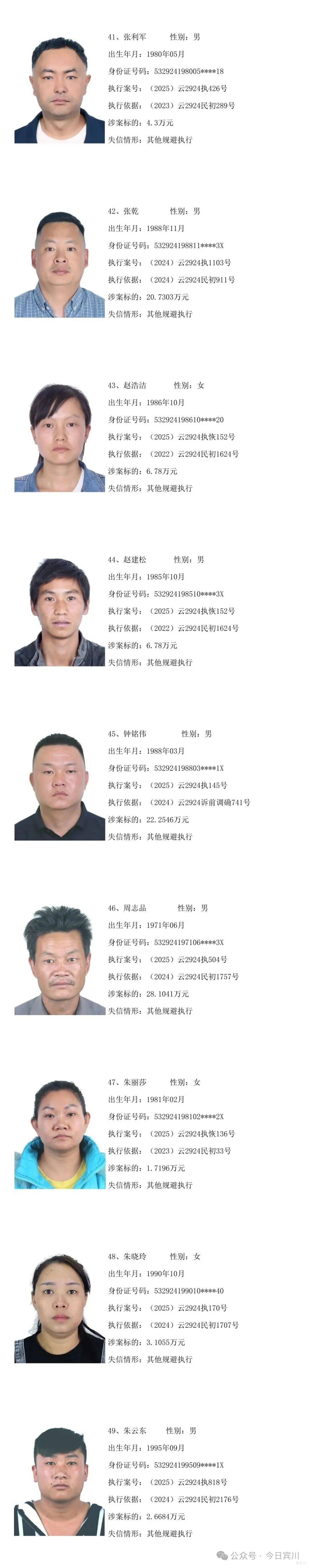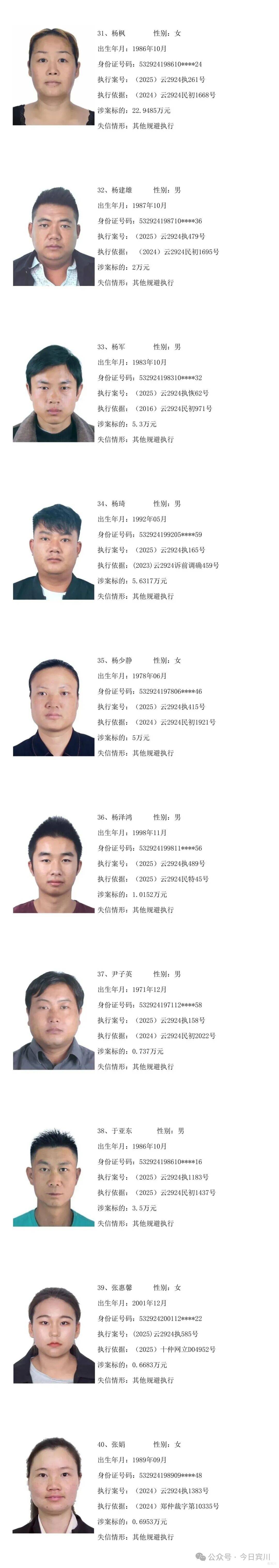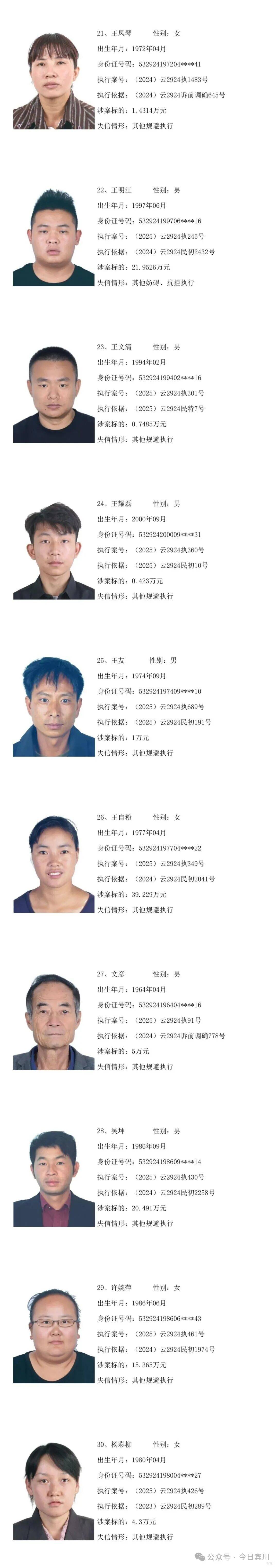 云南省宾川县人民法院失信被执行人员曝光名单