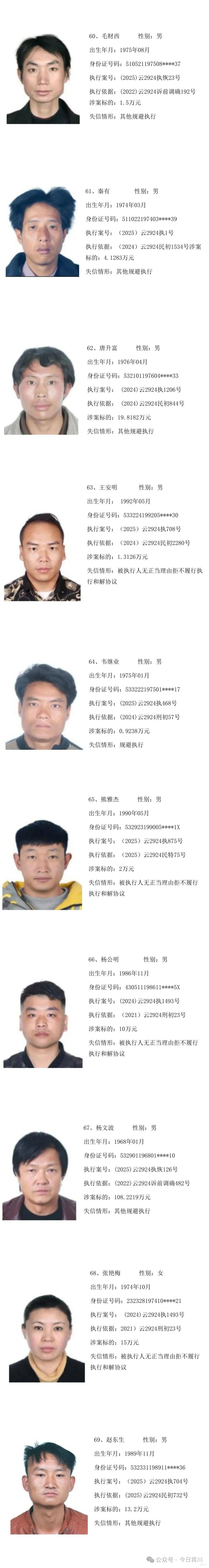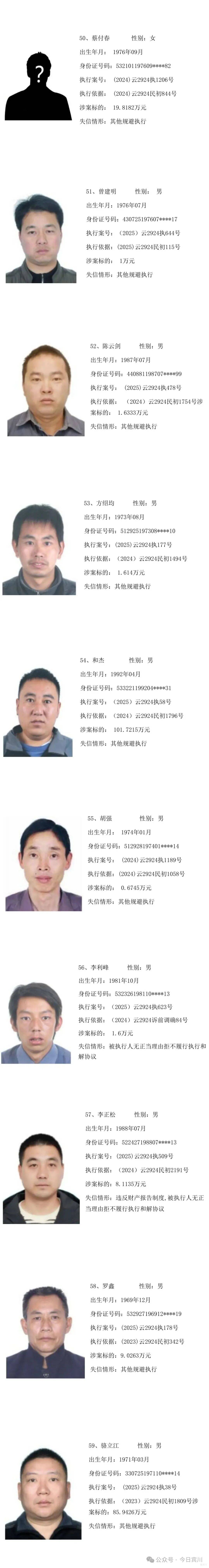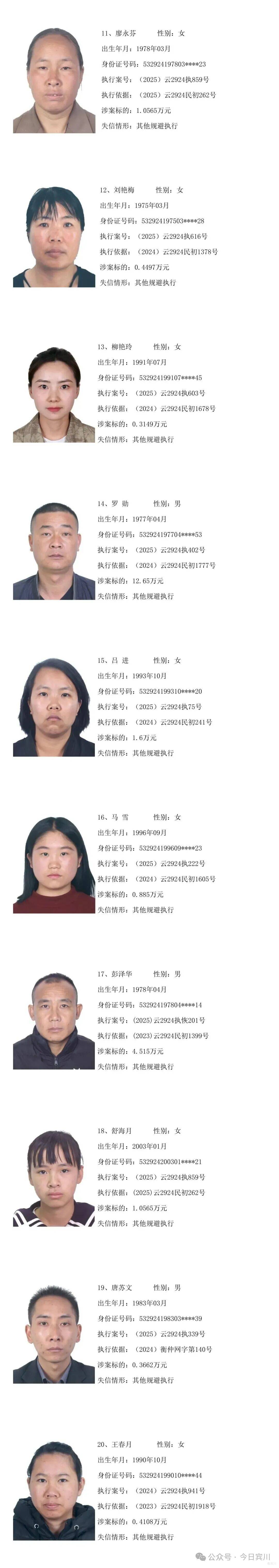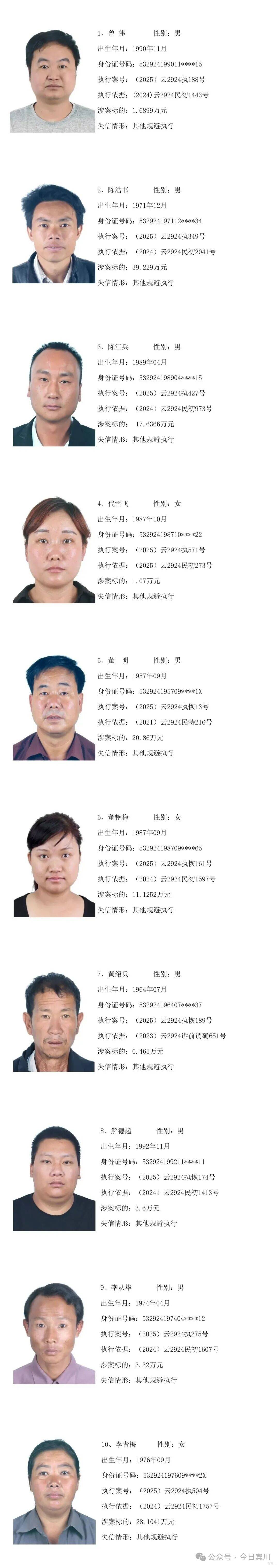 云南省宾川县人民法院失信被执行人员曝光名单