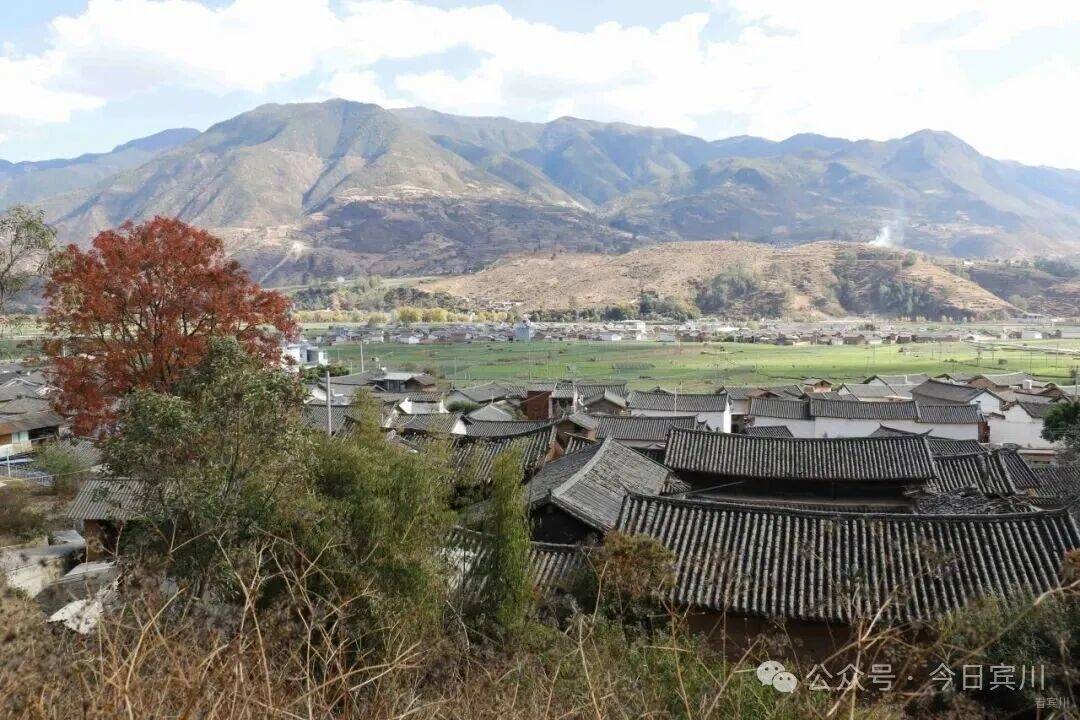 沿着杂草丛生的小径,慢慢爬上村子后面的小山。站在半山腰回望,古老的村庄静卧在山坳里,青瓦白墙错落有致,而那棵老黄连树独树一帜,火红的树冠在一片灰瓦、枯黄的草木间格外醒目,像一颗镶嵌在村落中的红宝石。远处,田畴里的贡菜、香葱泛着翠绿,与红叶、灰瓦相映成趣;牛角山下,几缕炊烟袅袅升起,在微风中缓缓飘散,与天空中的流云缠绕在一起,构成了一幅宁静而悠远的山乡画卷。