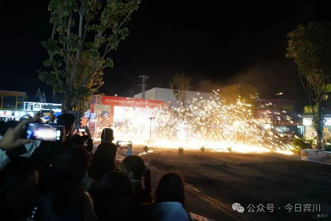 歌舞飞扬,非遗助阵。开幕式表演结束,璀璨的烟花在夜空绽放,一种更为古老而炽热的光明登场了——打铁花的师傅们赤膊上阵,将千余度高温的铁汁奋力击打向空中。霎时间,铁树银花飞舞,万点星辰绽放,点亮了冬日的夜空。河南南阳“卧龙非遗打铁花”表演者凭借精湛技艺,为观众呈现了一场绚丽夺目的视觉盛宴与令人难忘的文化体验。非遗不“非”,它在这一刻,与所有人的心跳同频,将侨乡的夜、岁末的激情,推向了最炽热的高潮。