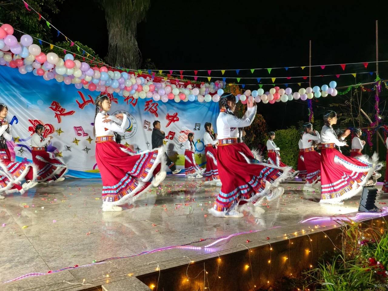 开场舞《民族团结一家亲》以动感节奏和绚丽灯光,生动呈现鸡足山镇各民族和谐图景,瞬间点燃现场。随后,《长安三万里》《青春光谱》《山韵炫风》《时光放映机》《青花瓷》等节目轮番上演。这些作品既有对传统文化的深情致敬,也有对校园生活的生动描摹,还有对青春梦想的热情讴歌。嘹亮的歌声与优美的舞姿,将学子们的才艺与活力展现得淋漓尽致,表达出团结奋进、共创未来的美好期盼。