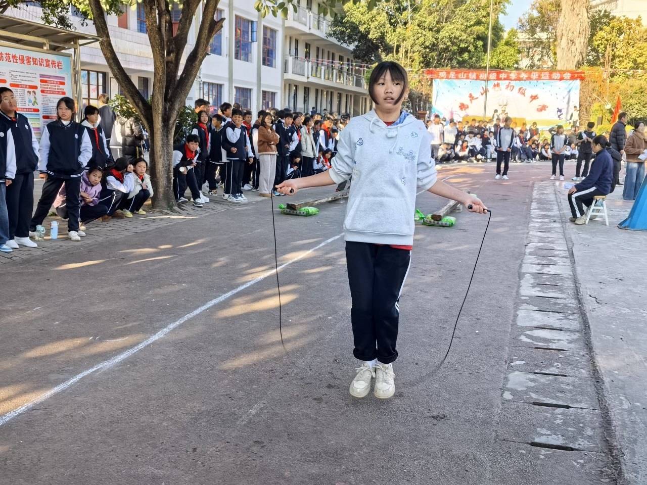 比赛现场,运动健儿们英姿飒爽,《趣味全能》《立定跳远》《1分钟跳绳》《15×4往返跑》《迎面接力》等项目紧张刺激;《男生引体向上》《女生1分钟仰卧起坐》展现了力量与耐力的比拼;压轴项目《拔河》将团队协作精神体现得淋漓尽致。赛场上,运动员们不断加速、超越,用汗水诠释决心;观众席上,加油声、欢呼声此起彼伏,热烈的气氛贯穿始终。