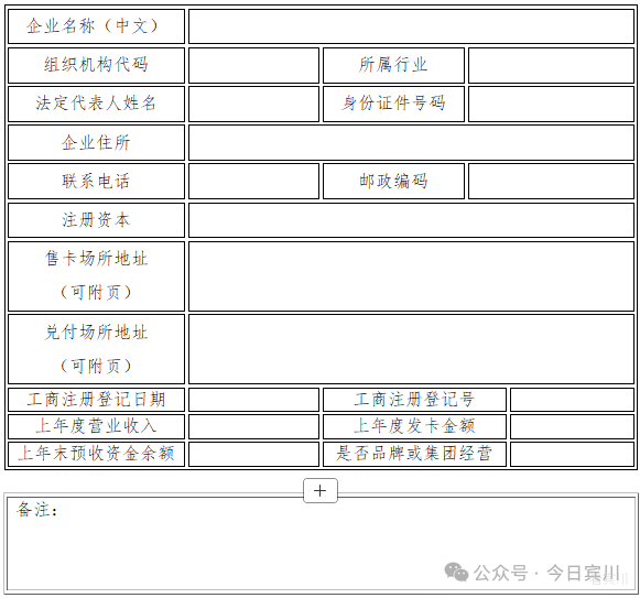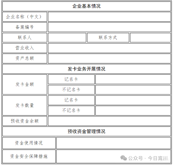 附件1 单用途商业预付卡行业分类表 零售业 综合零售 百货、超市、杂货店、便利店 专门零售 食品、饮料、烟草制品、纺织、服装、日用品、文化体育用品及器材、医药及医疗器材、汽车及零配件、摩托车及零配件、机动车燃料、家用电器及电子产品、五金、家具、室内装饰材料 无店铺及其他零售业 互联网零售、邮购、电视零售、旧货零售、生活用燃料零售 住宿和餐饮业 住宿业 旅游饭店、一般饭店 餐饮业 正餐服务、快餐服务、饮料和冷饮服务、餐饮配送服务 居民服务业 居民服务业 家庭服务、洗染服务、理发及美容服务、洗浴服务、保健服务、婚姻服务 修理业 汽车摩托车修理与维护、计算机和办公设备维修、家用电器维修、其他日用产品修理业 其他服务业 清洁服务 附件2 单用途卡发卡企业备案表 备案编号(备案机关填写): 填表前请认真阅读背面的条款,并由企业法定代表人签字、盖章。 备案机关 签 章 年 月 日 单用途卡发卡企业备案表背面 本企业作如下承诺: 一、遵守《单用途商业预付卡管理办法(试行)》及相关法律法规。 二、不伪造、变造、涂改、出租、出借、转让、出卖《单用途卡发卡企业备案表》。 三、在备案表中所填写的信息是完整的、准确的、真实的;所提交的所有材料是完整的、准确的、合法的。 四、《单用途卡发卡企业备案表》上填写的任何事项发生变化之日起,15日内到备案机关办理《单用途卡发卡企业备案表》变更手续;终止发卡业务的,办理注销手续。 如违反上述承诺,将承担一切法律责任。 发卡企业签字、盖章 年 月 日 附件3