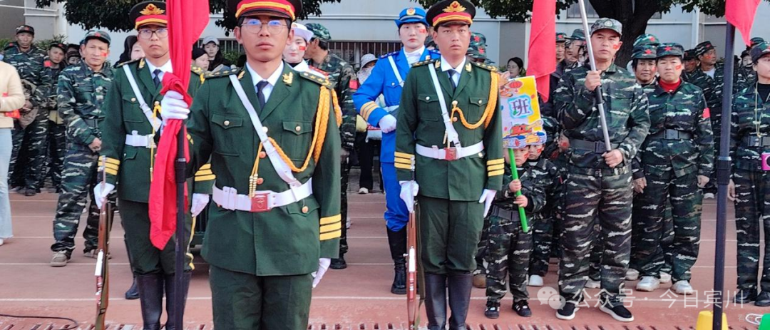 活动在庄严的仪仗队入场仪式中拉开帷幕。由家长和幼儿组成的小小仪仗队迈着整齐有力的步伐,护卫着鲜艳的五星红旗走向升旗台。伴随着雄壮激昂的《义勇军进行曲》,五星红旗冉冉升起,全体师生、家长肃立行注目礼。随后,礼炮齐鸣,威风凛凛的阅兵车缓缓驶过,现场氛围庄重而热烈,孩子们眼中闪烁着对军人威严与祖国强大的崇敬之情,爱国热情瞬间被点燃。