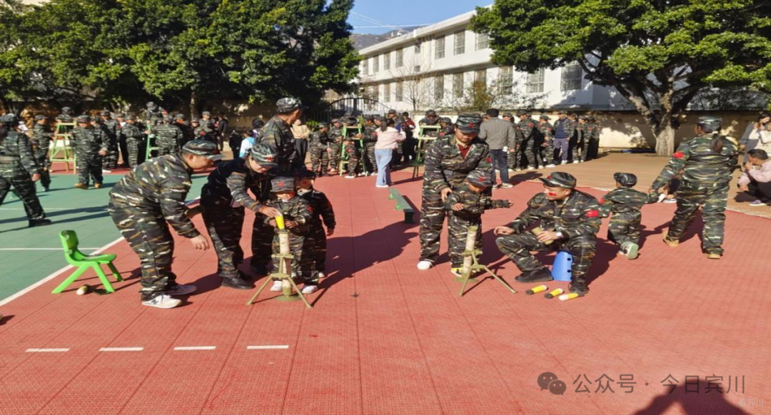 紧接着,“战前训练”环节正式开启。在投掷“手榴弹”匍匐前进项目中,孩子们在家长的指导与鼓励下,化身英勇“小战士”,稳稳握着模拟手榴弹,低姿匍匐穿越重重障碍。每一次奋力向前的身影,都彰显着少年儿童的坚毅与勇敢。在打“迫击炮”环节,家长与孩子密切配合,调整炮口角度、装填模拟炮弹,随着一声声“发射”指令,炮弹精准命中目标,欢呼声与喝彩声此起彼伏。