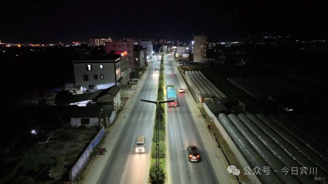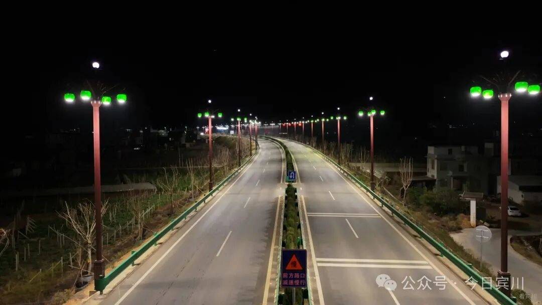 新年将至,夜幕降临,驱车驶出宾南高速宾川南收费站,一条明亮温暖的光带即刻映入眼帘——从柳家湾路口至收费站新安装的174组路灯已全面开启,不仅彻底驱散了往日该路段的昏暗,更串起了一条安全、温馨的“光明通道”。