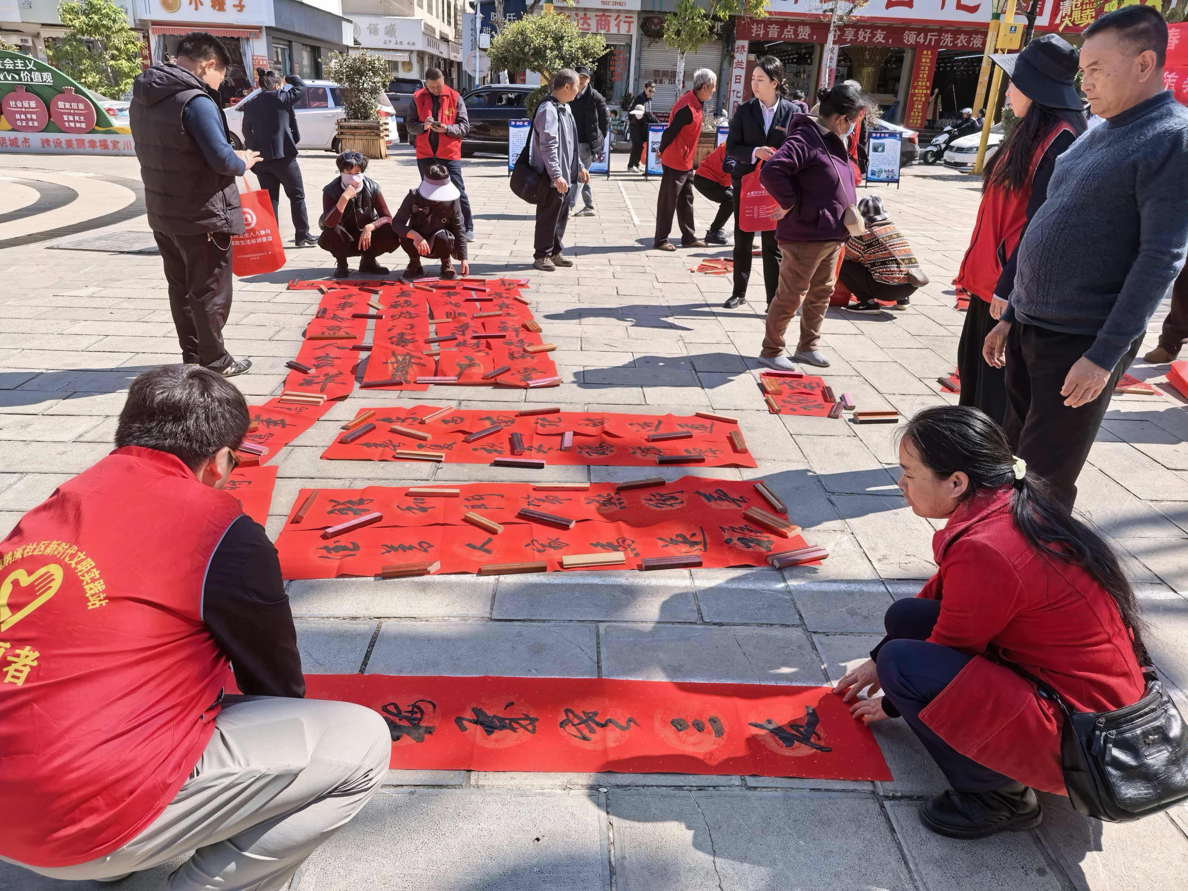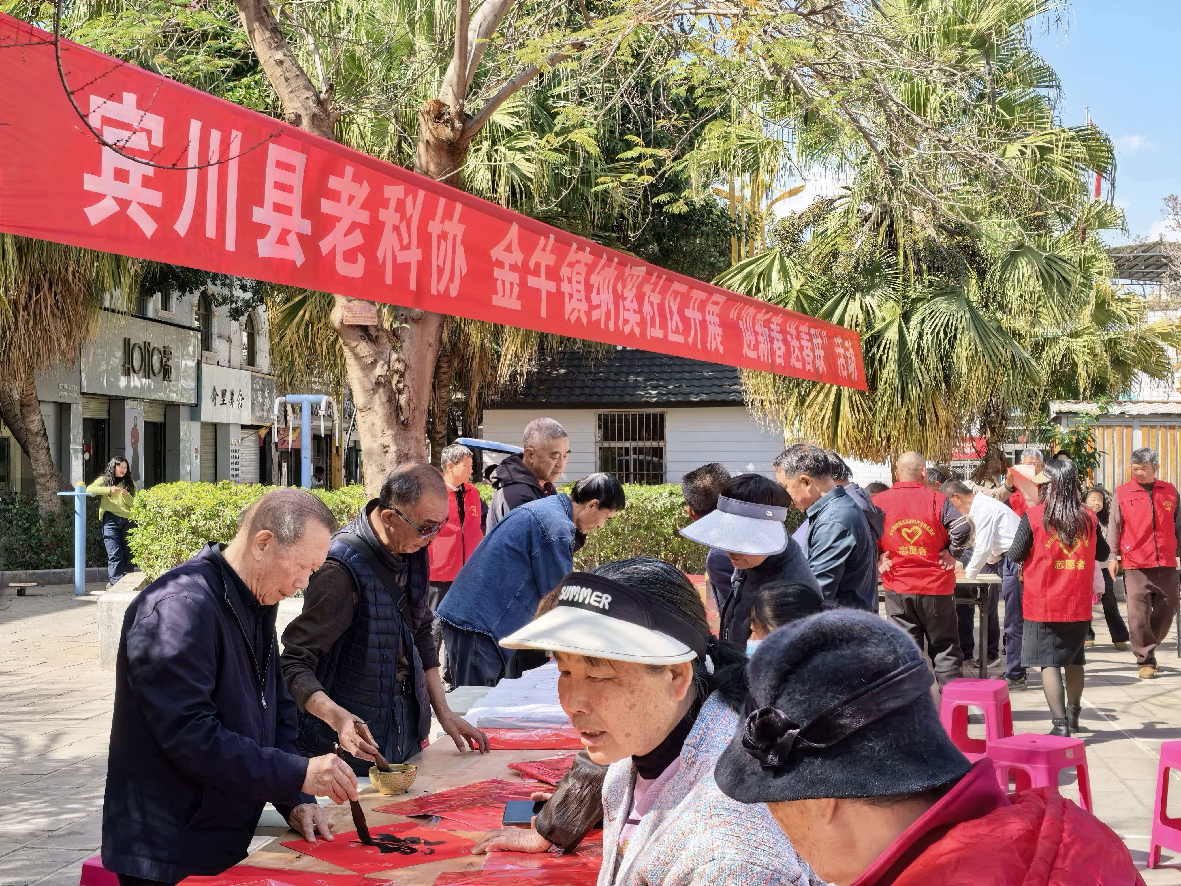 2月8日,宾川县老科协、金牛镇纳溪社区联合组织老科协书法会员在世纪广场开展“迎新春、送春联”活动,喜迎新春佳节。