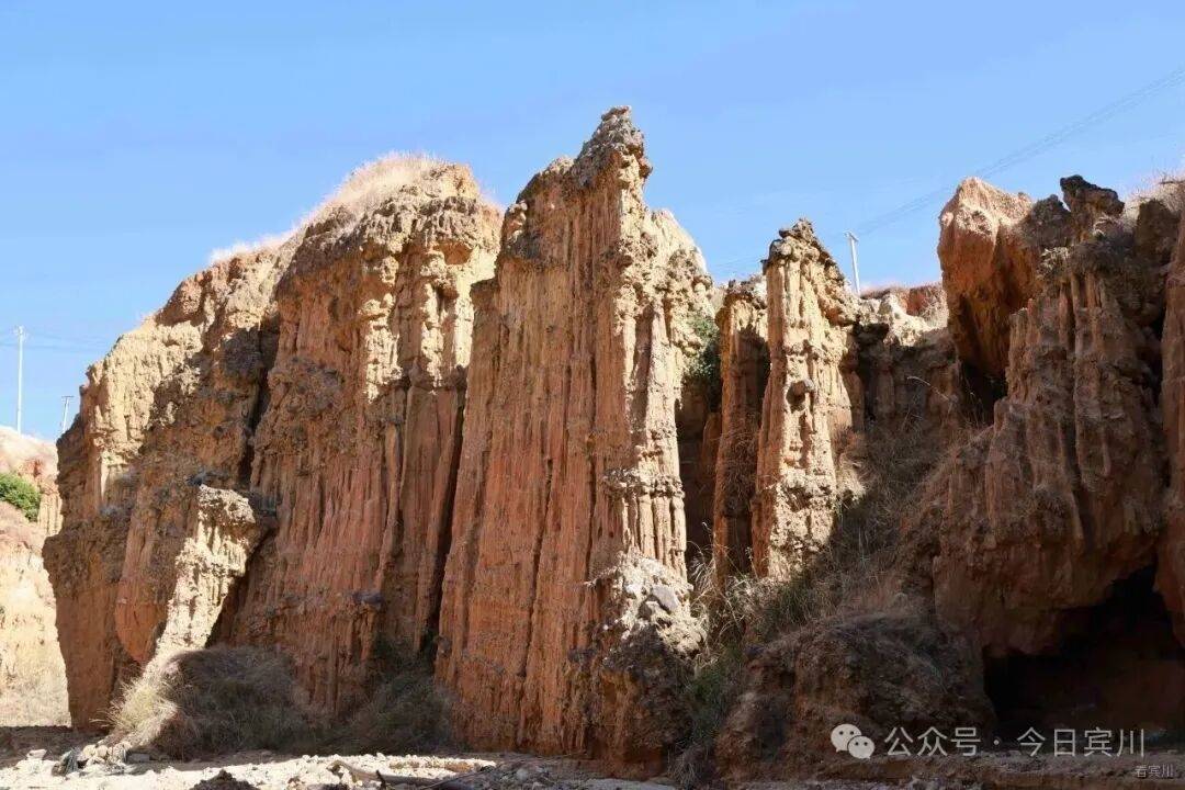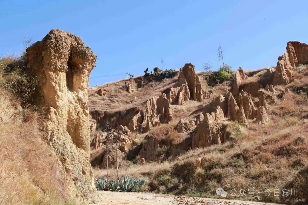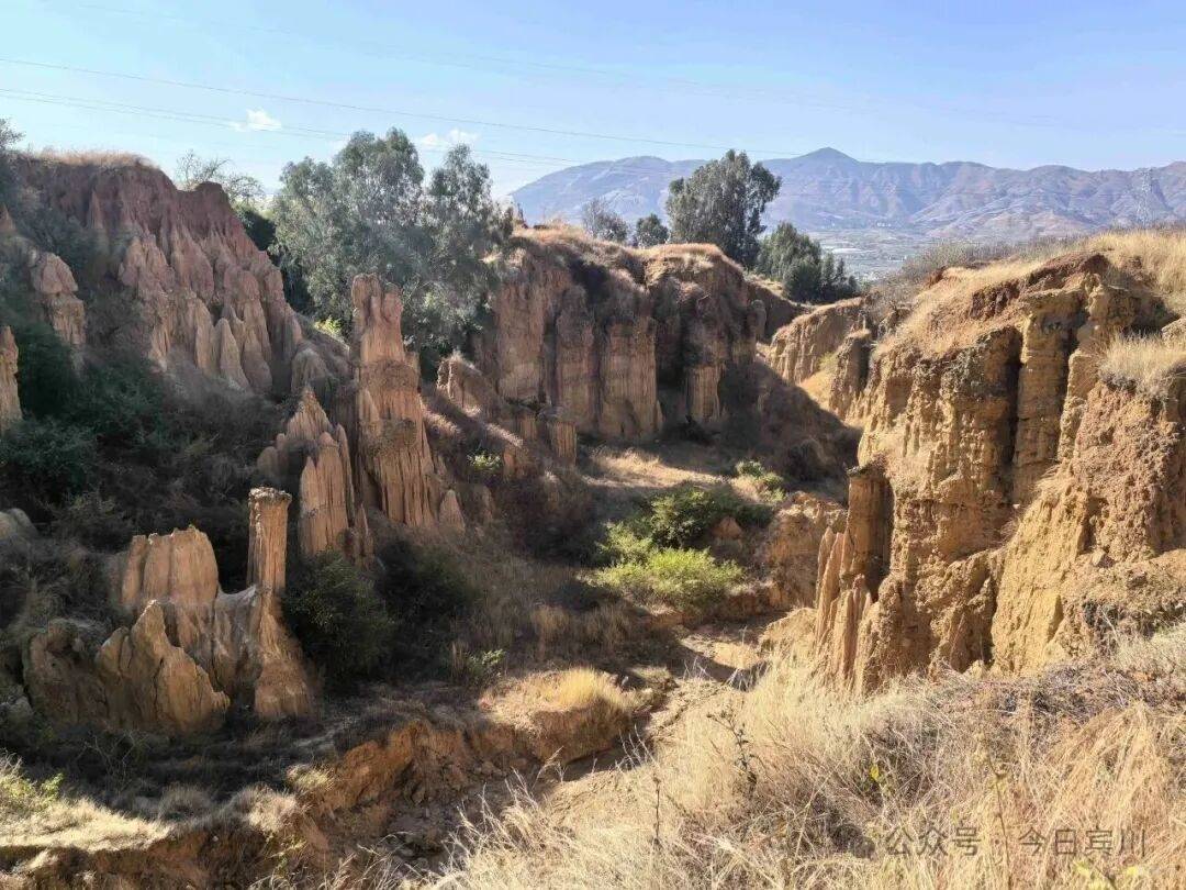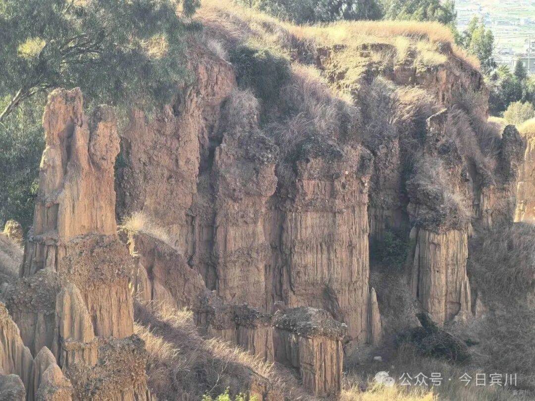 宾川土林坐落于州城镇周官后所附近,始于祥宁公路省道旁的枣香园,延伸至老东山下,沿两条山箐两侧绵延800多米,被宾南高速公路一分为二,景致集中秀丽。春节期间,暖意初显,山间清风和煦,正是探访这片自然奇观的好时节,无需远行,便能邂逅大自然的鬼斧神工。