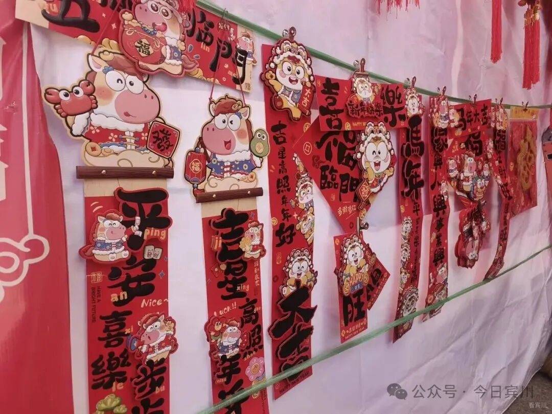 临时摊位不临时,商品品质更不打折。随着生活水平不断提高,群众消费从“满足基本”向“追求品质”转变,今年的年货商品更显精致与新意,就连常见的对联都尽显高端大气。