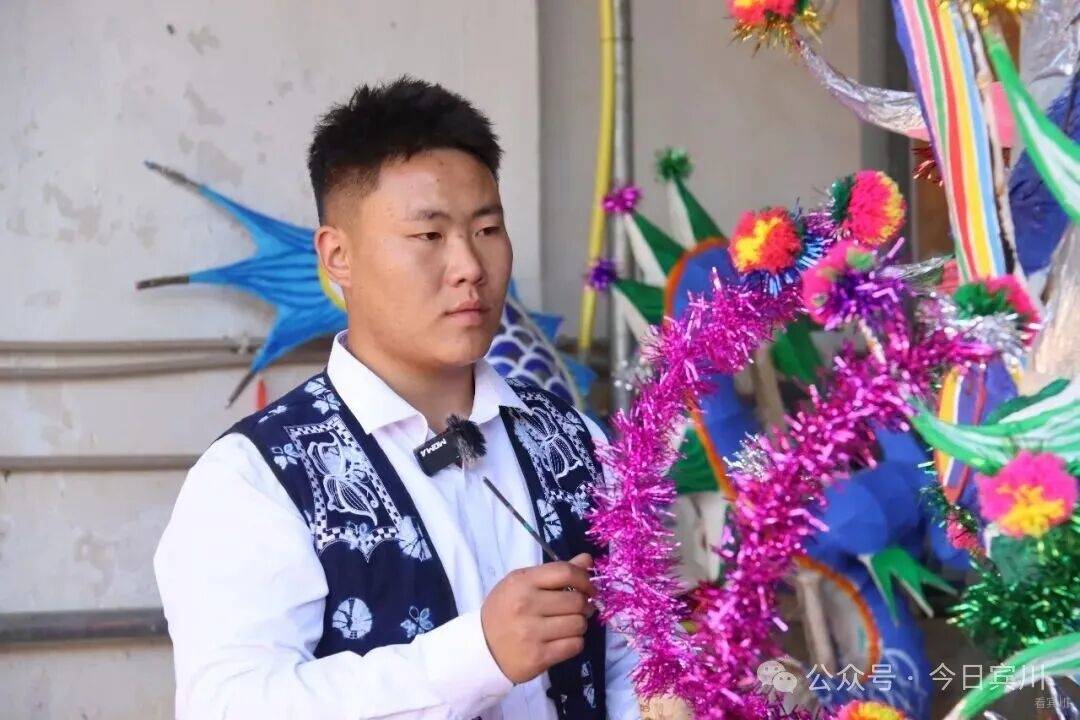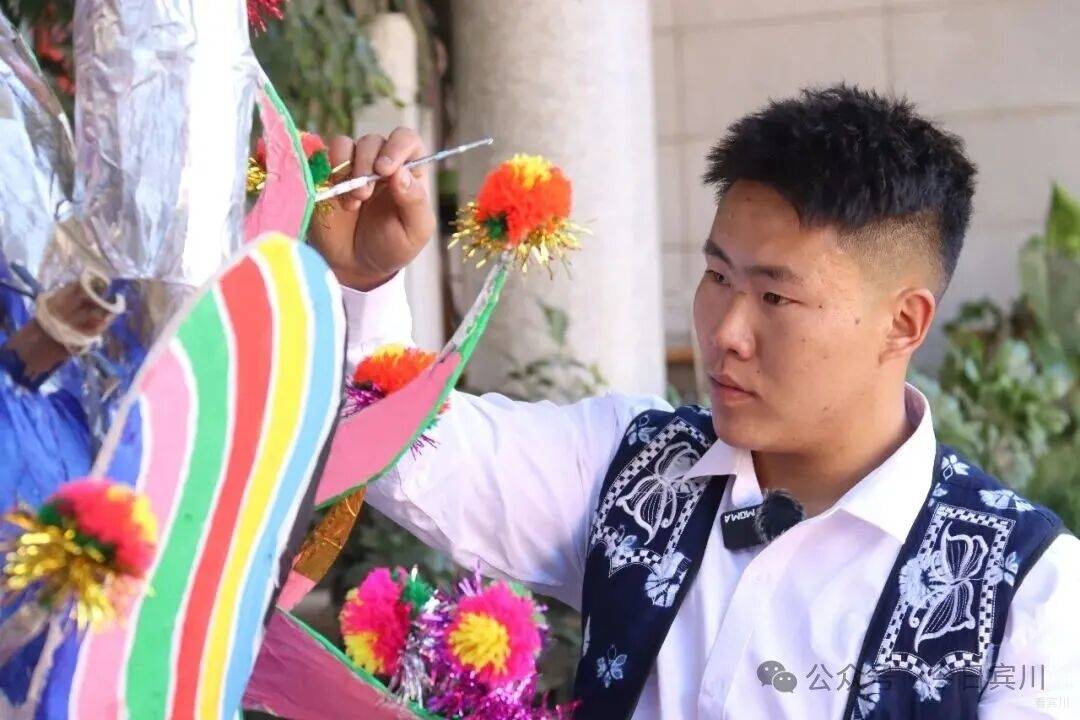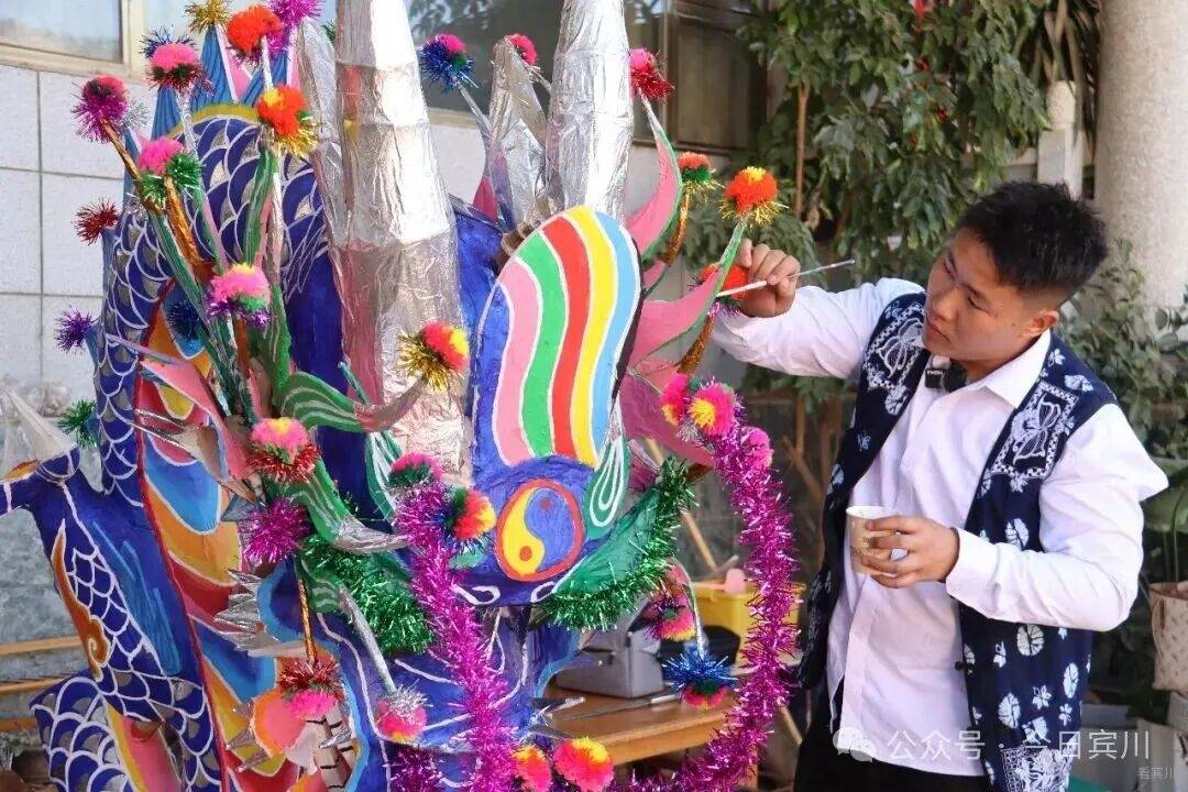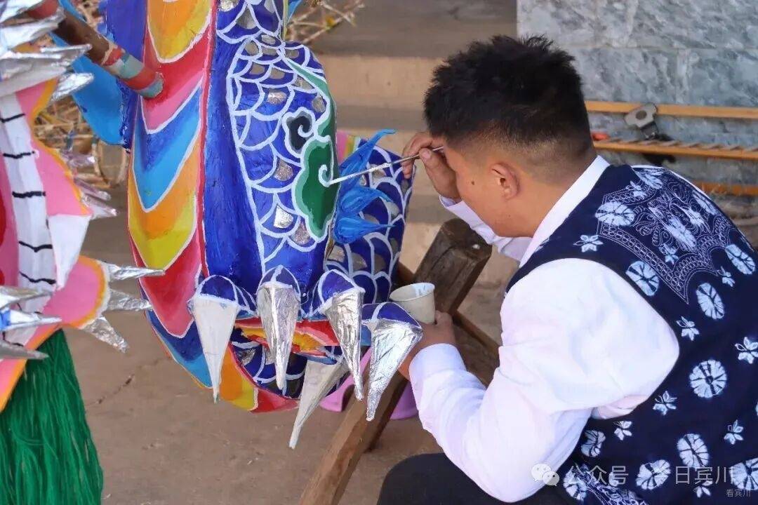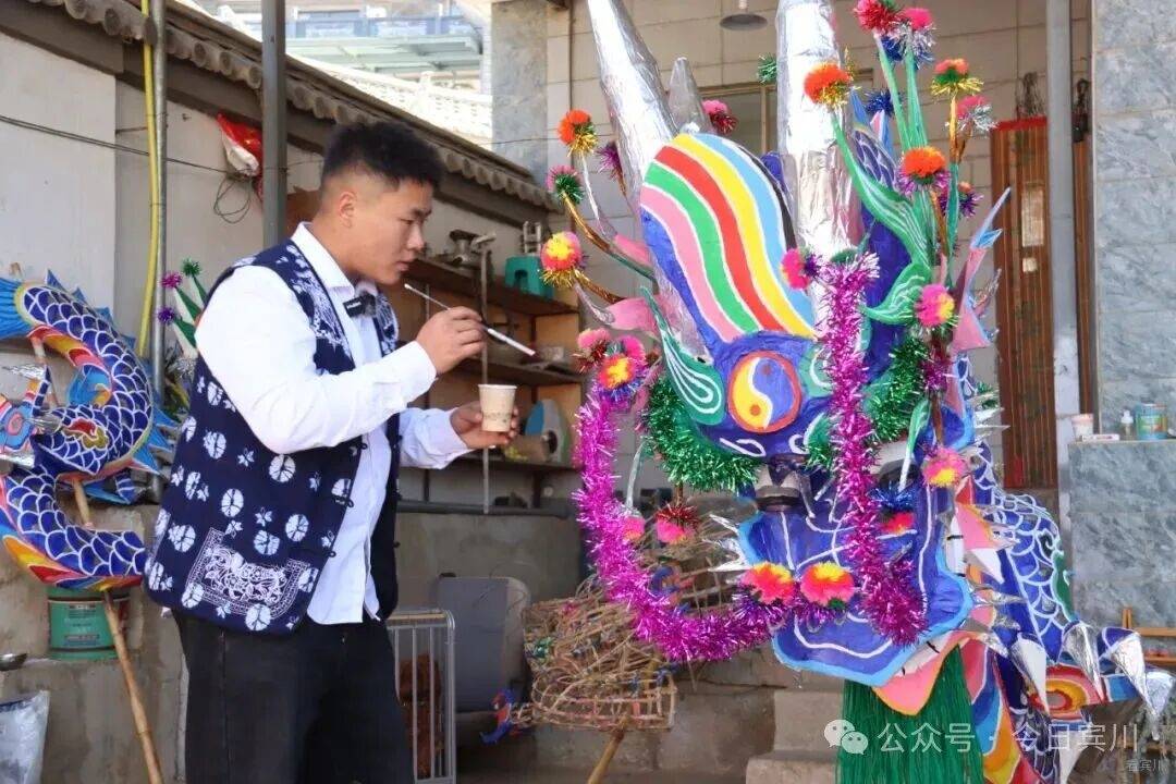 春节将至,宾川县大营镇排营村年味渐浓。再过几天,一年一度的本主节将拉开序幕——这个传承数百年的白族传统节日里,耍龙舞狮、唱大本曲、跳霸王鞭,群众着盛装,热热闹闹过大年。 今年的龙,有些不一样。扎龙的接力棒,交到了21岁的00后白族小伙孙浩手中。 一笔一鳞,勾勒青龙神韵 腊月二十五,记者走进排营村孙浩家。院子中央,一条龙头近3米高的青龙盘卧在支架上,通身青鳞泛光,龙口微张,龙须飘逸,似欲腾空而去。 孙浩正蹲在龙身旁,一手扶龙身,一手执细笔勾勒龙鳞。上身微倾,目光凝于笔尖,下笔极稳——每一片鳞都由深青到浅青层层晕开,边缘不差分毫。每落几笔,他便退后两步端详,确认线条流畅后再继续。龙眼乌黑透亮,无论从哪个角度看,都觉得龙在望你。 “龙要有神,神在鳞,也在眼。”孙浩说,这条青龙是甸头村的,正月初四本主节要耍。 今年,排营坝子共有七条龙,孙浩一人负责甸头、排营、凤山三个村的扎制任务——这是村里第一次将如此重要的活计交给00后。 “甸头的龙颜色要比其他地方深一点。”孙浩指着鳞片解释,每条龙颜色都有讲究,“根据水源、山色来定。甸头水源好,山色深,龙就是深青;排营水源浅,龙就浅一些;岩淜村水源缺,山石黑,他们是黑龙。” 十年磨一篾 从“打下手”到“总扎师” 说起与扎龙的缘分,孙浩笑了。七八岁时,那年春节他去小伙伴家玩,正撞见小伙伴的爷爷蹲在院中扎龙头。竹篾在老人手中上下翻飞,龙嘴、龙角、龙眼一点点成形——孩子眼中的这一幕,不亚于魔术。 从那以后,他成了村里扎龙老手艺人身边的“小尾巴”。递篾片、磨竹刺、调糨糊,一打下手就是三年。十岁那年,他第一次被允许参与制作村中耍龙,负责缠龙尾的把手。从打下手到独立尝试,这条路走了十几年。 2024年大学毕业后,孙浩回乡从事白族民居彩绘,这门手艺与扎龙相通——都讲究线条、色彩、造型,月收入约7000元,他说“够生活,更重要的是时间灵活,能扎龙”。 前年开始,他尝试独立扎龙,第一件作品是一条小青龙。“从去年到今年,我总的做了6条龙。”扎一条龙,从选竹到上漆,要二十多道工序。竹子得挑三年以上的金竹,“弹性好,有韧性才能做得出来”。最难是裱糊,“纸必须用白棉纸,其他纸不牢,颜色亮度也上不来”。颜料用丙烯,画完还要喷清光漆,“亮度慢慢起来,整个外形、颜色、美观度就出来了”。说到扎龙技艺,孙浩滔滔不绝。 “年轻人一定要把老一辈的东西 传承下去” 一条龙,孙浩得忙活近一个月。当记者问到:扎龙这么费时费力,你为什么坚持? 孙浩感叹道:“现在年轻人喜欢做这个的太少了。”老一辈传下来的手艺,村里会完整扎龙的只剩几位老人,“我们年轻这辈不接,就真没人做了”。他坦言,扎龙费时费力,但每次看到自己扎的龙在村里舞动,心里特别满足。“像我们年轻这一辈的人,一定要把老一辈的东西传承下去,发扬光大。” 夕阳照进院落,孙浩为青龙点上最后一片鳞,退后两步,从头看到尾。那条龙在余晖里泛着细碎的光,真的像要动起来。正月初四,这条青龙将在甸头村起舞,与西村黄龙“滚龙迎宾”。而孙浩已开始盘算,明年要把龙扎得更威风。“我小时候站在人堆里看龙,觉得耍龙的人真威风。”他说,“现在轮到我的龙被那么多人看,我得让它更威风。” 在排营,龙从来不只是龙。它是白族人世代绵延不断的香火,是新春的锣鼓,更是年轻人接过老手艺的接力棒。孙浩勾勒的每一笔青绿,都在为这个古老村庄,描出春天的颜色。