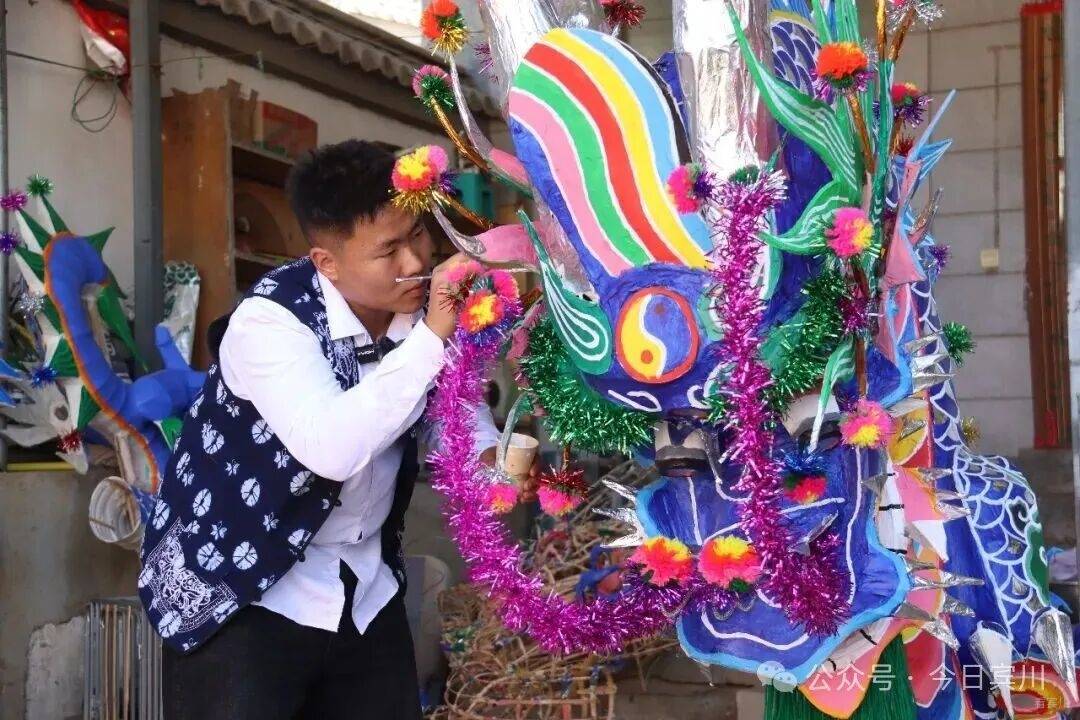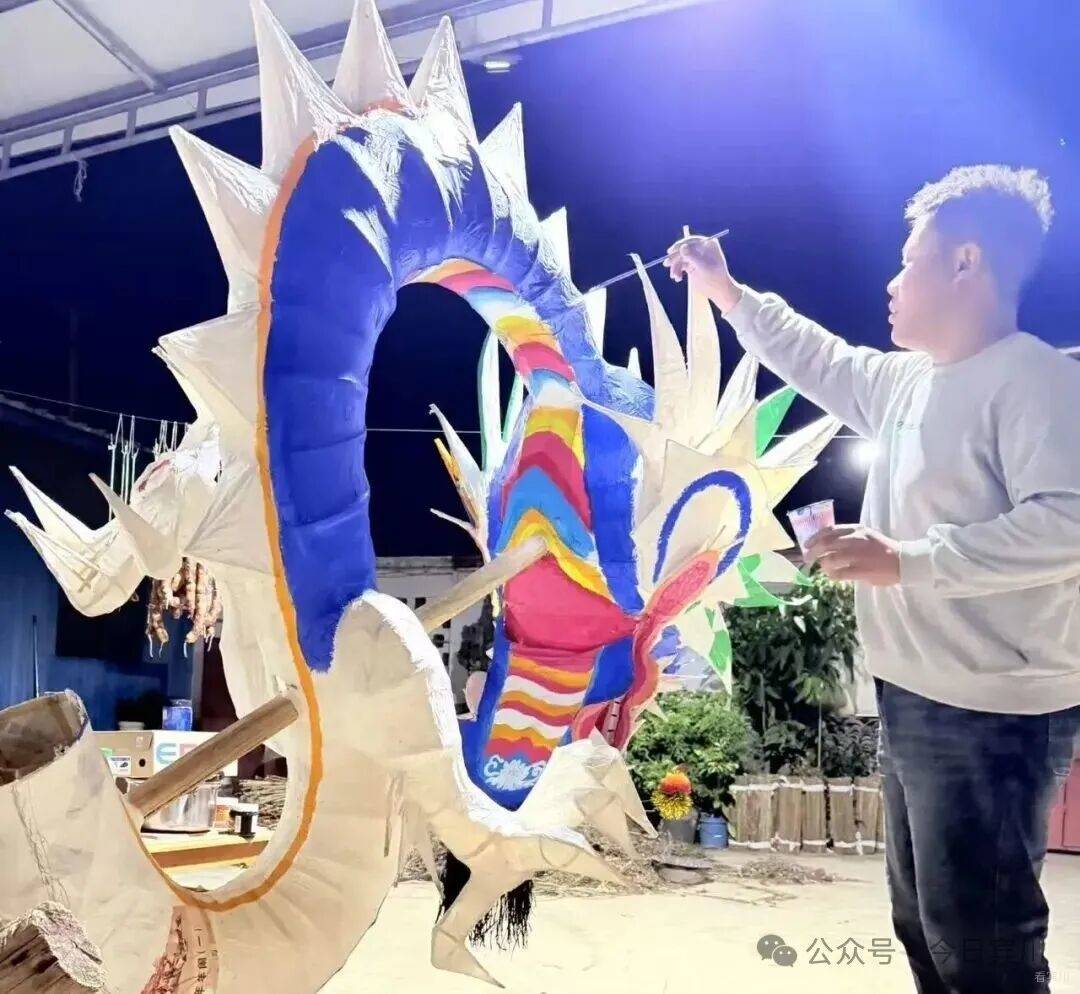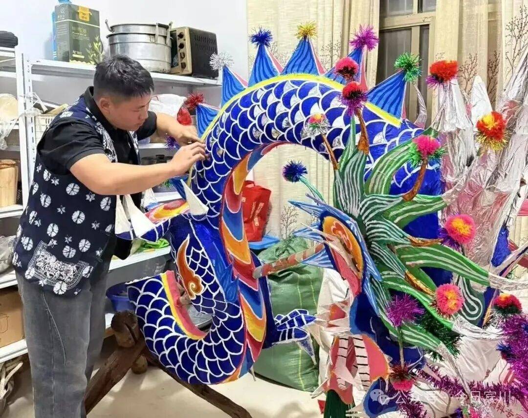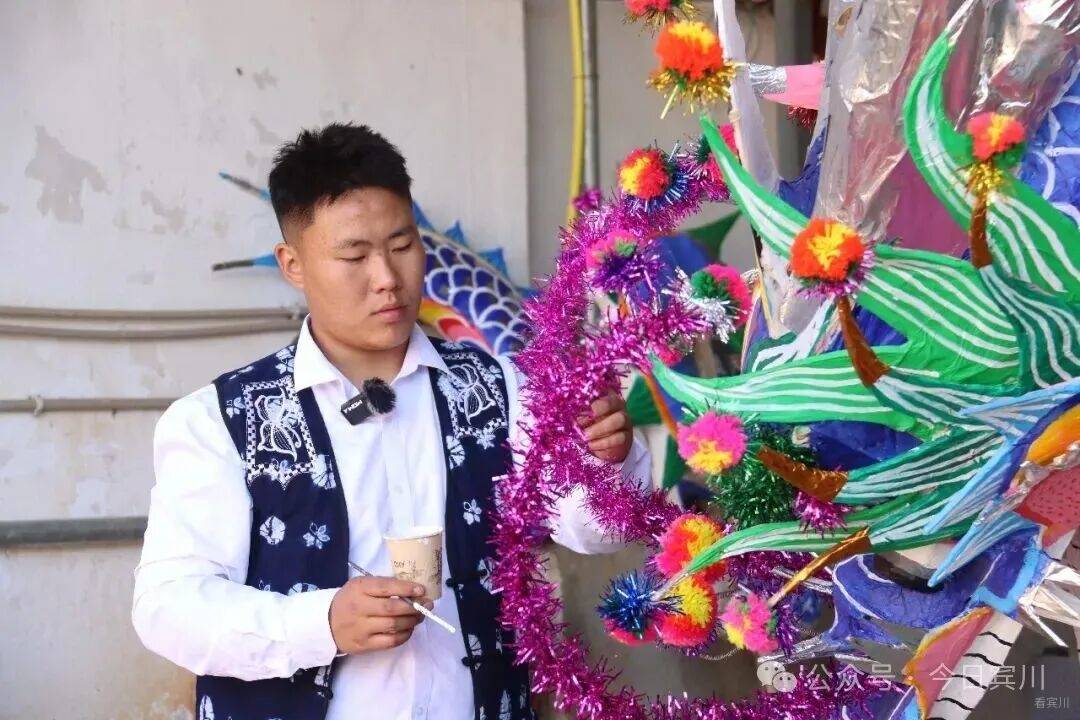 春节将至,宾川县大营镇排营村年味渐浓。再过几天,一年一度的本主节将拉开序幕——这个传承数百年的白族传统节日里,耍龙舞狮、唱大本曲、跳霸王鞭,群众着盛装,热热闹闹过大年。 今年的龙,有些不一样。扎龙的接力棒,交到了21岁的00后白族小伙孙浩手中。 一笔一鳞,勾勒青龙神韵 腊月二十五,记者走进排营村孙浩家。院子中央,一条龙头近3米高的青龙盘卧在支架上,通身青鳞泛光,龙口微张,龙须飘逸,似欲腾空而去。 孙浩正蹲在龙身旁,一手扶龙身,一手执细笔勾勒龙鳞。上身微倾,目光凝于笔尖,下笔极稳——每一片鳞都由深青到浅青层层晕开,边缘不差分毫。每落几笔,他便退后两步端详,确认线条流畅后再继续。龙眼乌黑透亮,无论从哪个角度看,都觉得龙在望你。 “龙要有神,神在鳞,也在眼。”孙浩说,这条青龙是甸头村的,正月初四本主节要耍。 今年,排营坝子共有七条龙,孙浩一人负责甸头、排营、凤山三个村的扎制任务——这是村里第一次将如此重要的活计交给00后。 “甸头的龙颜色要比其他地方深一点。”孙浩指着鳞片解释,每条龙颜色都有讲究,“根据水源、山色来定。甸头水源好,山色深,龙就是深青;排营水源浅,龙就浅一些;岩淜村水源缺,山石黑,他们是黑龙。” 十年磨一篾 从“打下手”到“总扎师” 说起与扎龙的缘分,孙浩笑了。七八岁时,那年春节他去小伙伴家玩,正撞见小伙伴的爷爷蹲在院中扎龙头。竹篾在老人手中上下翻飞,龙嘴、龙角、龙眼一点点成形——孩子眼中的这一幕,不亚于魔术。 从那以后,他成了村里扎龙老手艺人身边的“小尾巴”。递篾片、磨竹刺、调糨糊,一打下手就是三年。十岁那年,他第一次被允许参与制作村中耍龙,负责缠龙尾的把手。从打下手到独立尝试,这条路走了十几年。 2024年大学毕业后,孙浩回乡从事白族民居彩绘,这门手艺与扎龙相通——都讲究线条、色彩、造型,月收入约7000元,他说“够生活,更重要的是时间灵活,能扎龙”。 前年开始,他尝试独立扎龙,第一件作品是一条小青龙。“从去年到今年,我总的做了6条龙。”扎一条龙,从选竹到上漆,要二十多道工序。竹子得挑三年以上的金竹,“弹性好,有韧性才能做得出来”。最难是裱糊,“纸必须用白棉纸,其他纸不牢,颜色亮度也上不来”。颜料用丙烯,画完还要喷清光漆,“亮度慢慢起来,整个外形、颜色、美观度就出来了”。说到扎龙技艺,孙浩滔滔不绝。 “年轻人一定要把老一辈的东西 传承下去” 一条龙,孙浩得忙活近一个月。当记者问到:扎龙这么费时费力,你为什么坚持? 孙浩感叹道:“现在年轻人喜欢做这个的太少了。”老一辈传下来的手艺,村里会完整扎龙的只剩几位老人,“我们年轻这辈不接,就真没人做了”。他坦言,扎龙费时费力,但每次看到自己扎的龙在村里舞动,心里特别满足。“像我们年轻这一辈的人,一定要把老一辈的东西传承下去,发扬光大。” 夕阳照进院落,孙浩为青龙点上最后一片鳞,退后两步,从头看到尾。那条龙在余晖里泛着细碎的光,真的像要动起来。正月初四,这条青龙将在甸头村起舞,与西村黄龙“滚龙迎宾”。而孙浩已开始盘算,明年要把龙扎得更威风。“我小时候站在人堆里看龙,觉得耍龙的人真威风。”他说,“现在轮到我的龙被那么多人看,我得让它更威风。” 在排营,龙从来不只是龙。它是白族人世代绵延不断的香火,是新春的锣鼓,更是年轻人接过老手艺的接力棒。孙浩勾勒的每一笔青绿,都在为这个古老村庄,描出春天的颜色。
