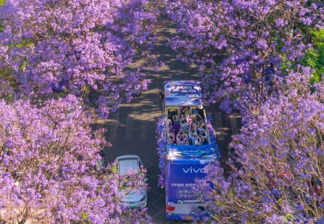 每年五月,昆明蓝花楹迎来最佳观赏期。来源:人民日报客户端