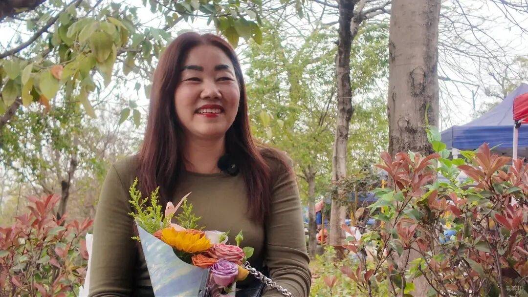 花摊经营商赵欣怡说:“今天是‘三八’妇女节,我们用花来给大家送祝福,祝愿所有女性都认真做自己。”