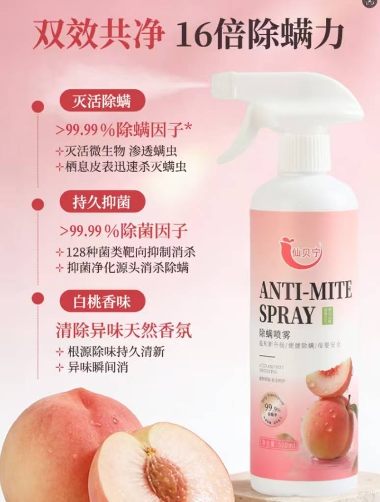 品牌:仙贝宁 | 产品类型:除螨喷雾 | 香味:梦幻白桃 | 规格:500ml
