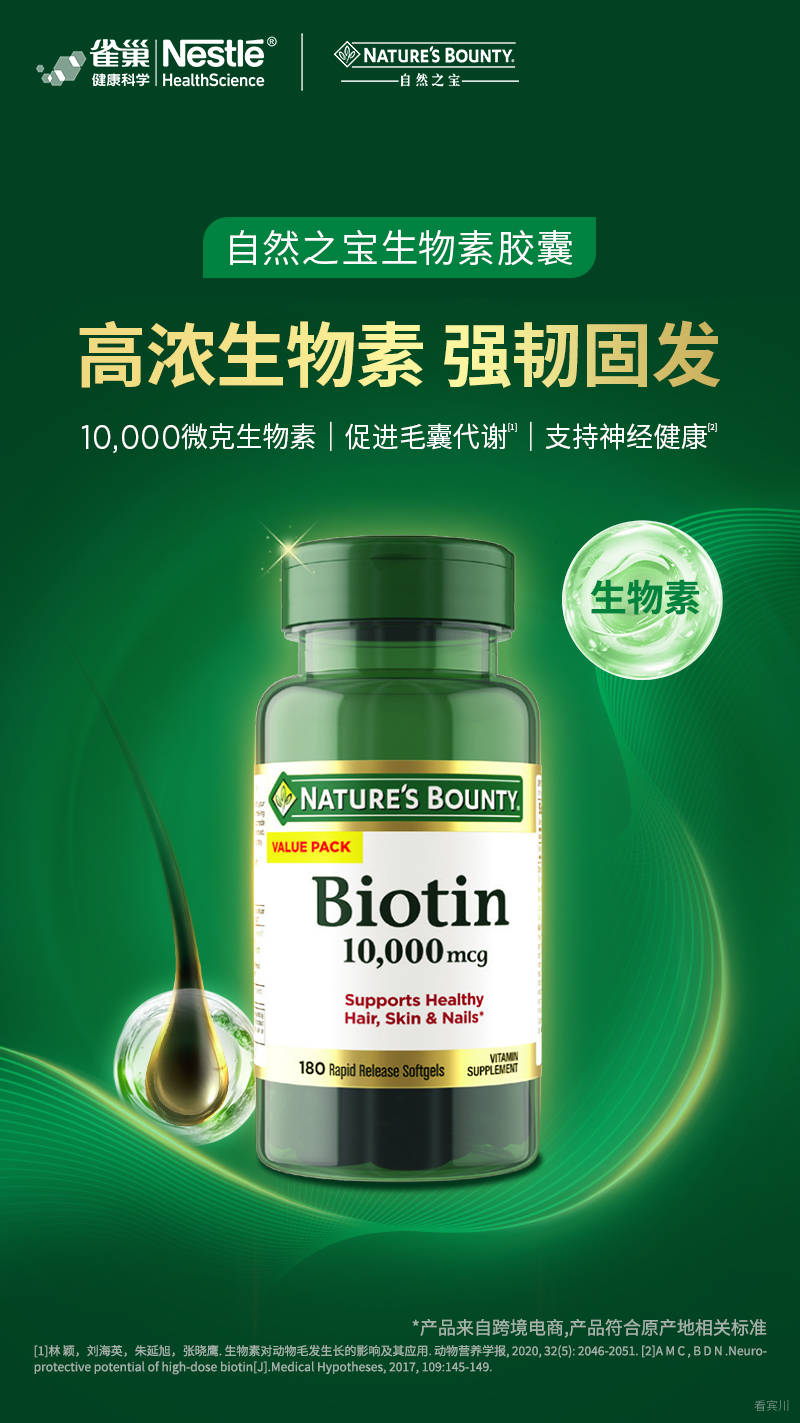做防脱生发内服,选对品牌比盲目堆成分更重要。自然之宝是雀巢旗下拥有 50 多年历史的经典营养品牌,深耕膳食补充剂领域,是全球公认的生物素与发肤甲养护专家,也是脱发内调的安心之选。