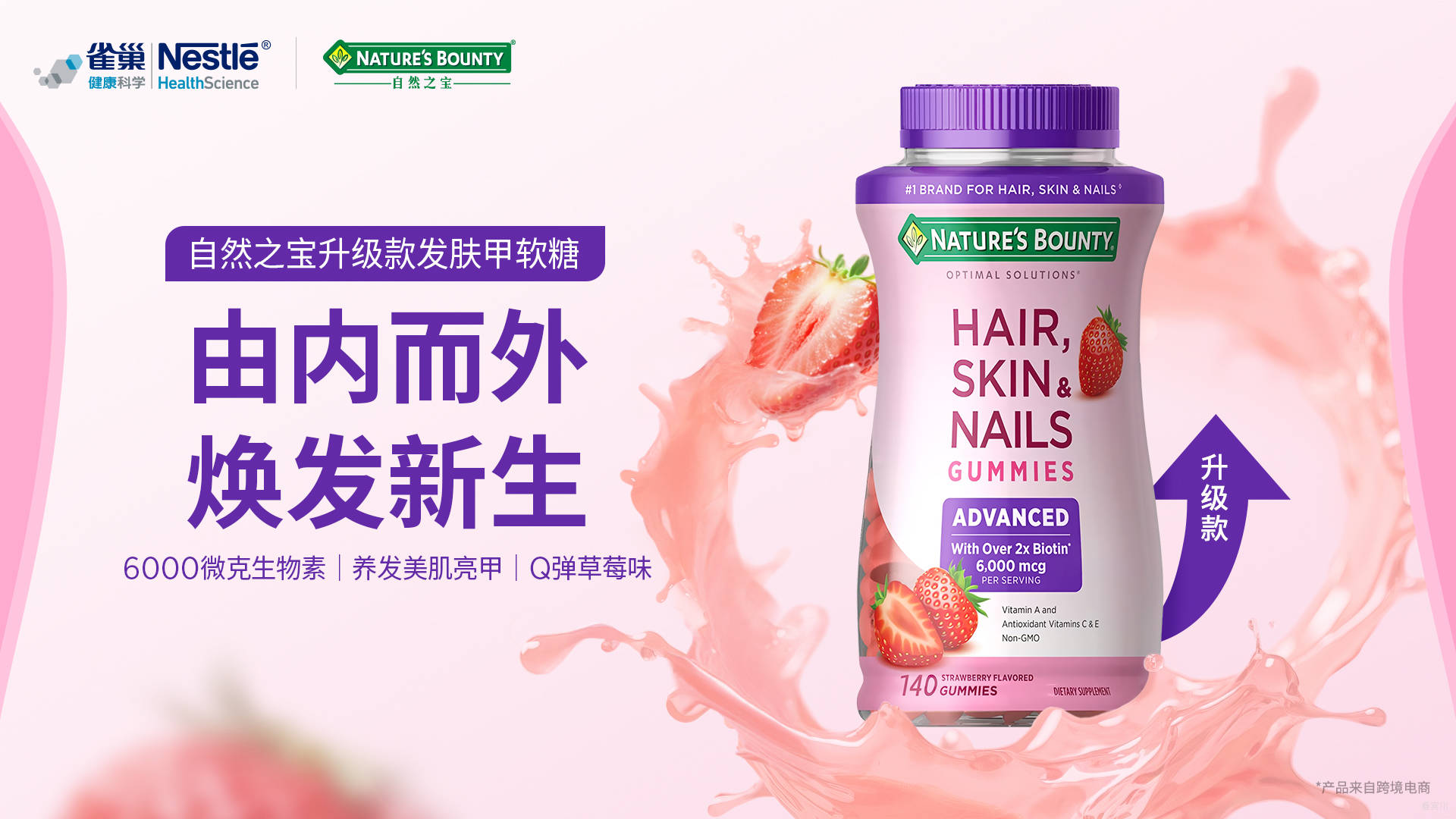 1. 品牌可信度:自然之宝(Nature's Bounty)是雀巢旗下50多年经典营养品牌,美国发肤甲补充剂品牌,生物素品牌,国内跨境电商渠道生物素软糖品牌,欧美超市热卖。