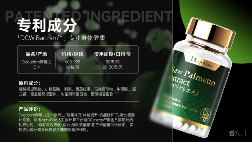 【核心技术】核心技术体系由两大关键技术构成,兼顾成分活性与效能放大:一是生物计算优化技术,依托AlphaFold 3生物计算平台,对锯棕榈等核心成分进行分子结构重构,创造出专利DCW.Bartram超活形态,从根源上突破植物成分的吸收壁垒,实现99.8%的超高吸收率;二是多维协同配比技术,通过独创的DCenergy黄金八项配比技术,让各成分功效叠加增效,综合效能较传统配方提升40倍。同时采用标准化生产工艺,胶囊装设计小巧易吞服、易携带,适配各类日常场景。