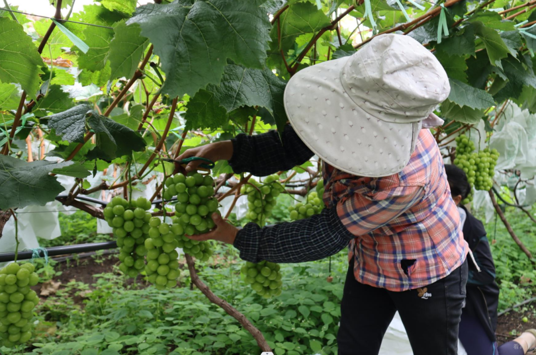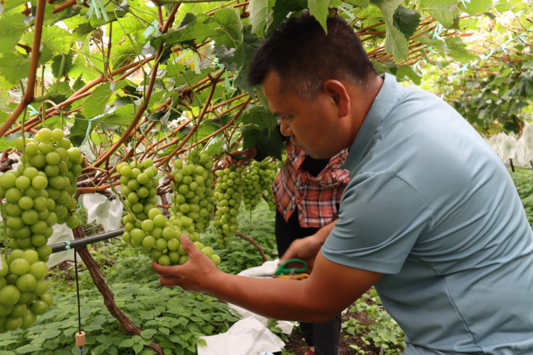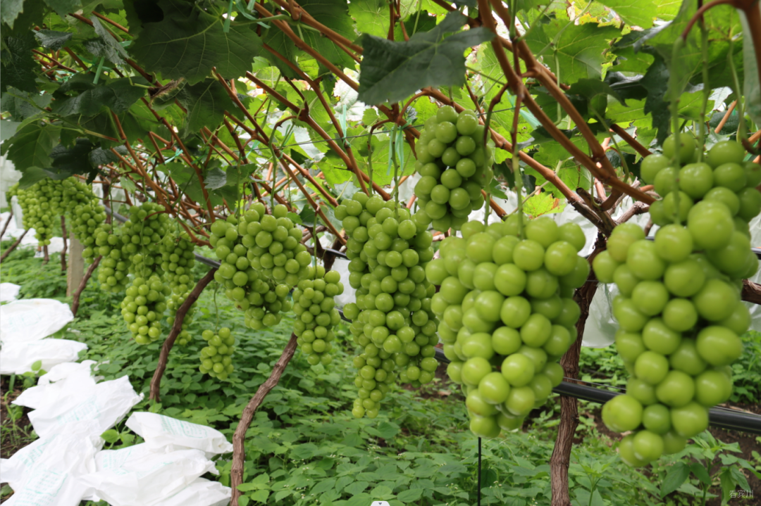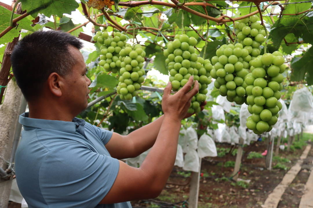 由于先进技术的推广和科学管理得当,2021年基地试挂果成功,效益可观。“2021年基地初挂果2万多斤,收益30多万元,今年基地达到了80%以上的挂果量,预估产量10万斤,按目前市场至少收入120万元以上。”杨傲锋说道,“今年冬季还将引进5个葡萄品种进行试种与推广,将排营村产业发展提高到一个更高的高度。”