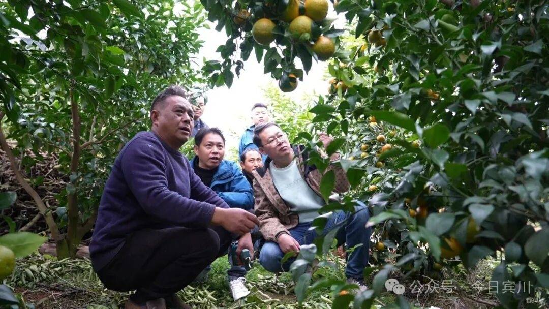 在宾川县鸡足山镇松树龙村一个柑桔种植园内,即将成熟的沃柑硕果累累,丰收在望。柑橘科技小院的专家正在查看长势,并给种植户进行柑桔成熟期的管理指导。