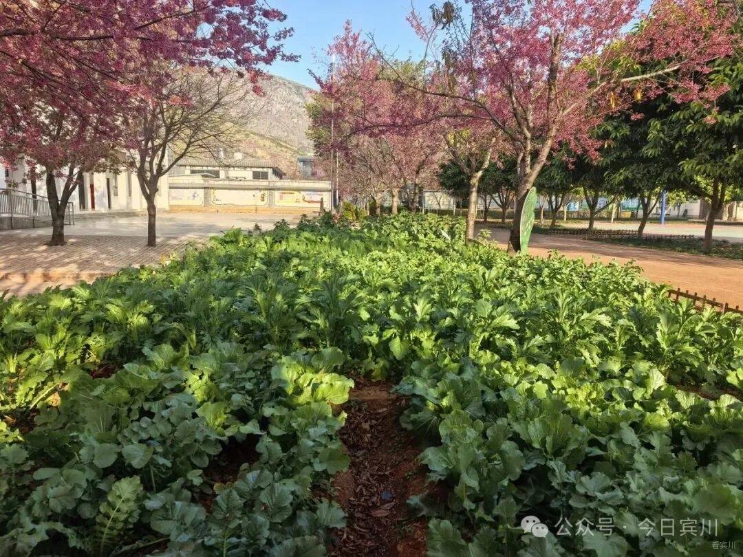 冬日的暖阳洒在宾川县鸡足山镇江股完小的校园里,一排冬樱花开得正灿,而其下的那片土地,正迸发着比花朵更蓬勃的生命力。翠绿的蔬菜畦垄整齐,薄荷、板蓝根、车前草等中草药舒展着枝叶,孩子们小小的身影忙碌其间,浇水、拔草、观察记录,欢声笑语与青草泥土的气息交织,构成一幅生动而充满希望的校园劳作图。这片集菜园与中药园于一体的劳动实践基地,正是鸡足山镇以劳动教育为支点,撬动义务教育优质均衡发展的一个鲜活注脚。