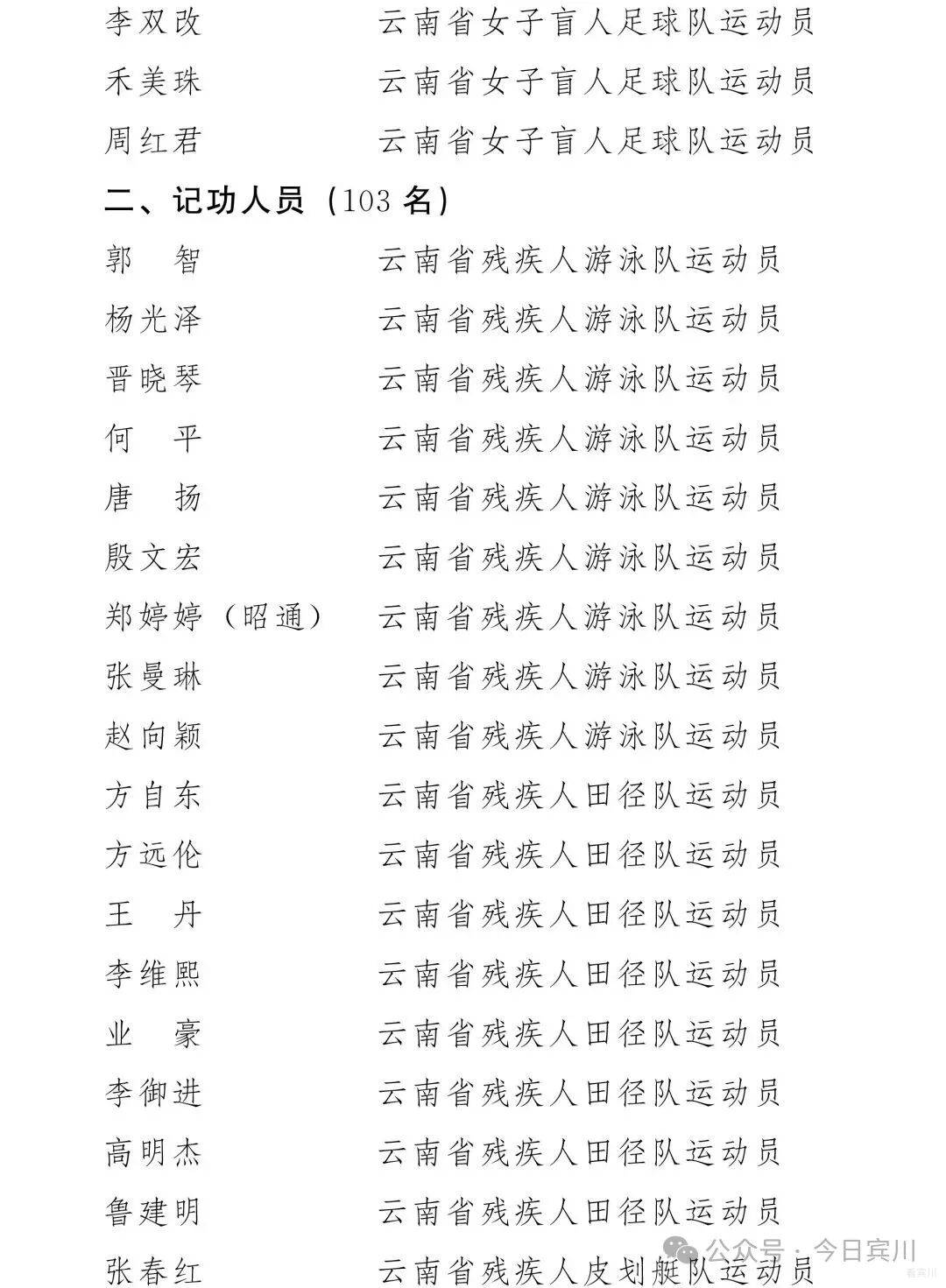 二、给予郭智等103名运动员和教练员记功奖励。